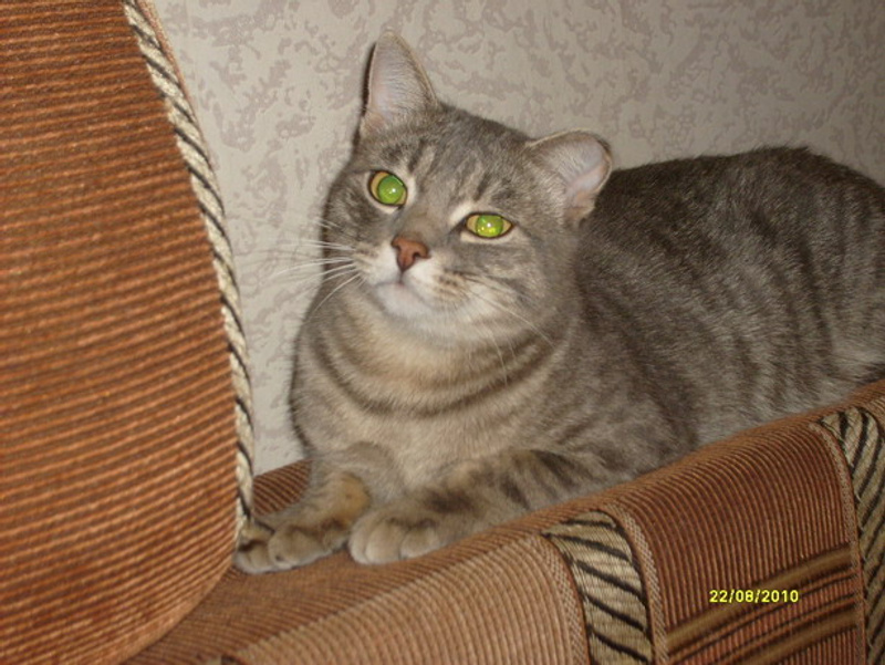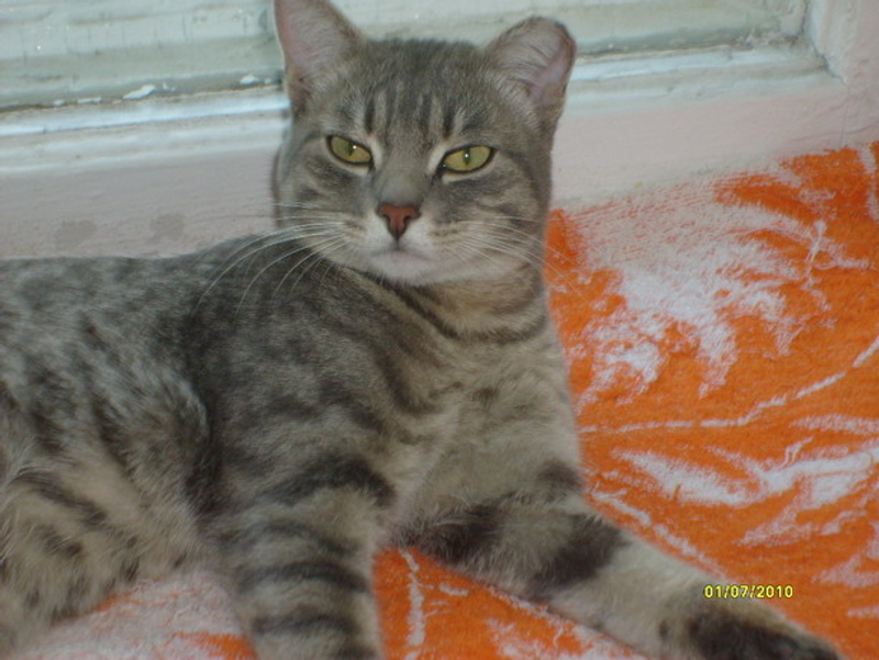Очень красивый окрас у мальчика - пятнисто-полосатый и глазки - желто-зеленые