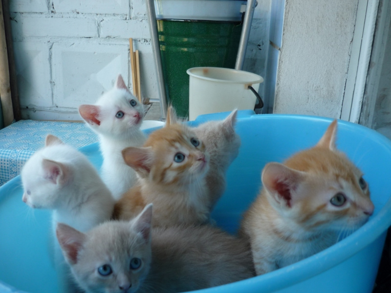 А вот в тазике голубом который он?Да, если не ошибаюсь, он в тазике голубом (в ведерке на первой фотке, точно не он - это Моня, он в понедельник уехал в новый дом) . Только вот, смотрю, взгляд у него "не добрый", ибо, только-только их с дач дернули и зафотали (они еще не мытые, людей опасаются). Сейчас это лапульки-красотульки- нежнульки и т.д.