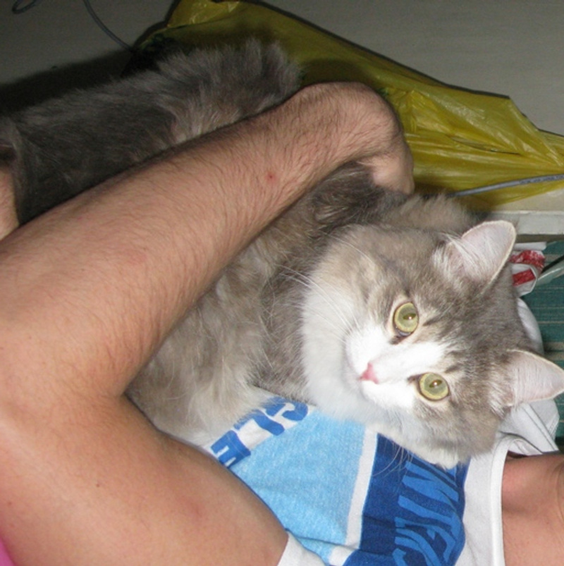 Из особенностей характера - не терпит ограничения свободы, так что варианты с закрыванием в ванной, на кухне и т.п. отпадают. Ласковый, общительный, любит забираться на руки, обнимать за шею и так проводить время Туалет знает (сыпучий наполнитель без проблем).