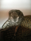 очень сообразительная. кушать просит, становясь на задние лапки и маневрируя передними.