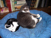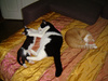 У самой 4 миски стоит, а лезет к старшим.