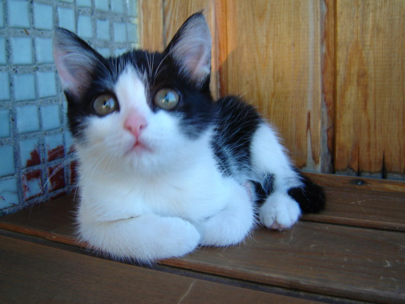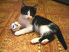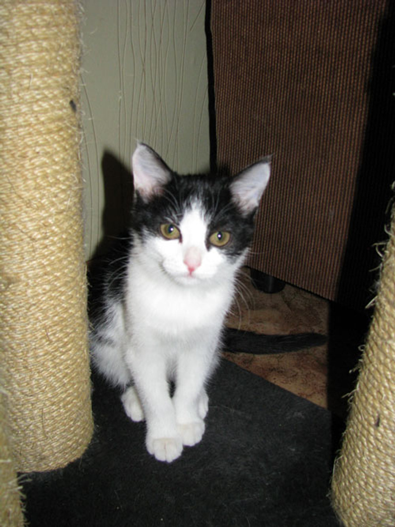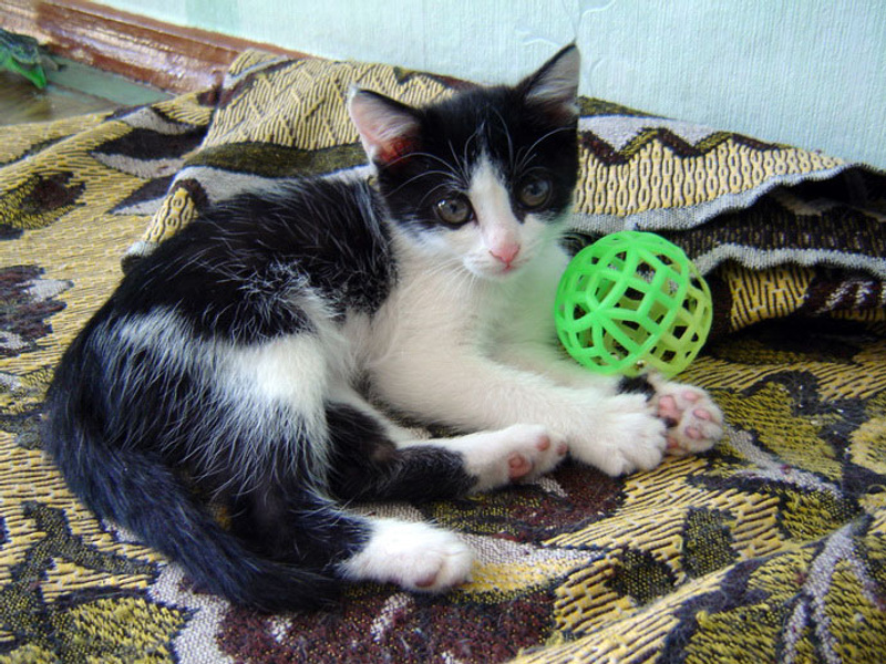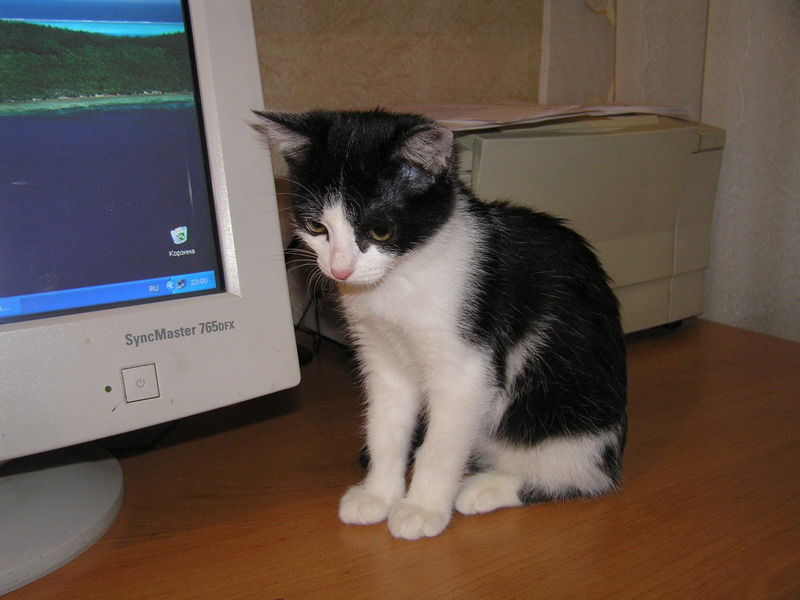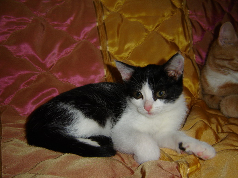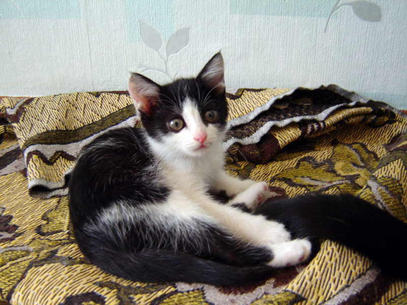 В остальном это веселый, мурчливый ребенок возрастом около 2-х месяцев.