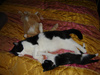 Сейчас Симочка чистая как кошачий ангелочек. Уже неделю находится на передержке (Троллейный жилмассив). Ребятенок по-тихоньку за неделю набирал вес, благо отсутствием аппетита не страдает. С удовольствием лопает сухой корм для котят Kitten36. С лотком пока с переменным успехом. Эксперементируем с наполнителем, опилками.
