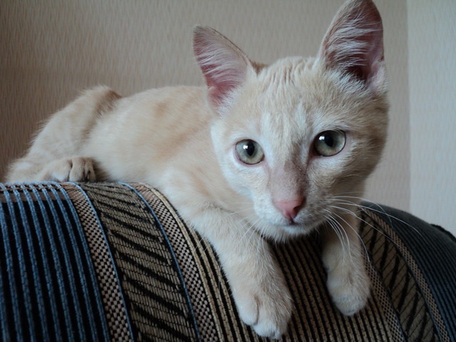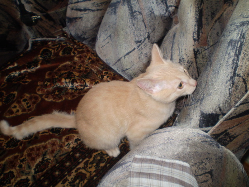 Катюша, котенок просто чудохозяева в него влюбились с первого взгляда расскажу по-порядку: пока везли его домой, он в машине мяукал, взяла его домик на руки-замолчал, успокоился; приехали домой, выпустила его, он покушал, сходил в туалет, давай носиться по квартире, все обнюхивать, особенно ему понравилось прятаться за цветы, которые стоят на полу, а потом резко нападать, обвиваясь за ногу и кусатьсяпотом забрался на окно, 13 этаж внизу пересечение Гоголя и Ипподромской, потоки машин,людей много, его не оторвать просто; в спальне двери гардеробной стеклянные-он скачет, как белка, очень понравилось ему с отражением играть. В общем, когда нужно было его везти хозяевам, муж чуть ли не со слезами с ним прощался, такой умный, игривый и безумно ласковый кот, еще и красавец. С нового места отчет Вам чуть позже напишу, вместе с фото.