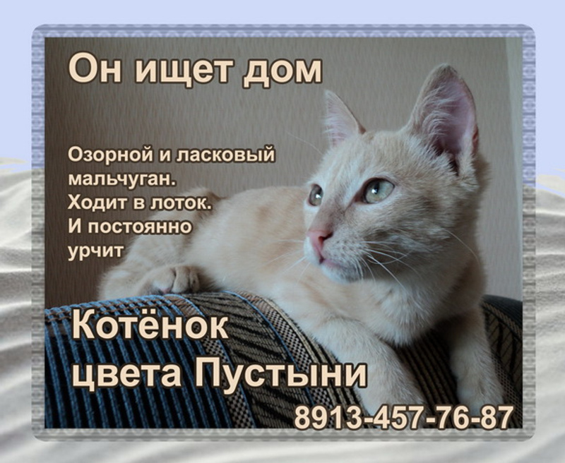 Воспитан, ест сухой корм, ходит в лоток и когда играет когти не выпускает! 8913-457-76-87