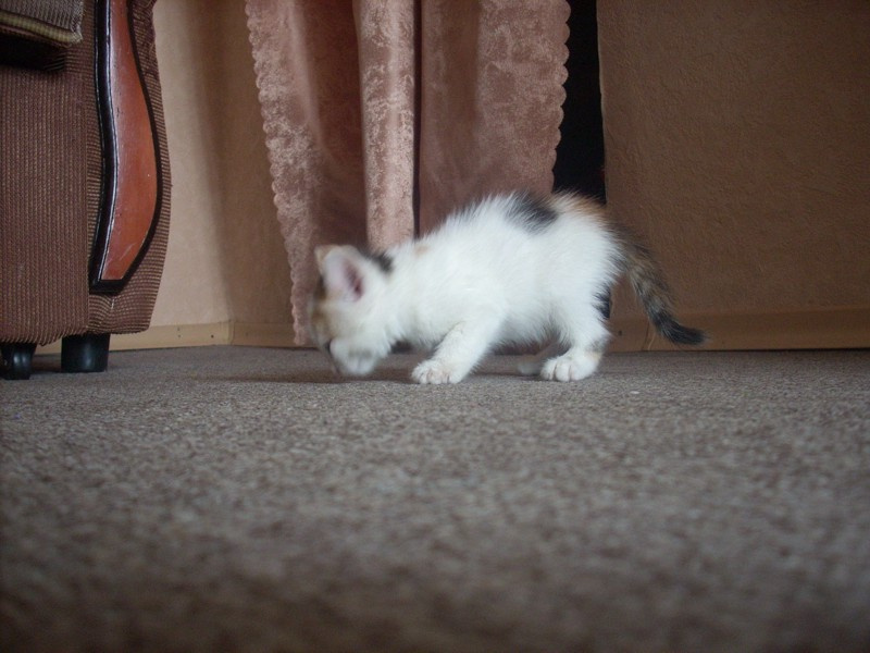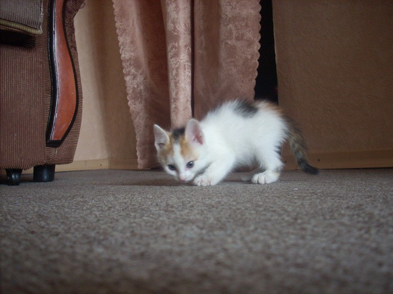 Сегодня в своем дворе за магазином 1000 мелочей подобрали маленького 3-цветного котенка... пока находится у нас дома. Но надо куда-то пристроить, т.к. дней 10 назад подобрали там же еще одного малыша и решили оставить.