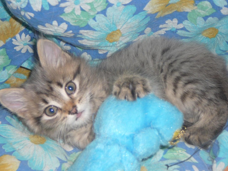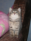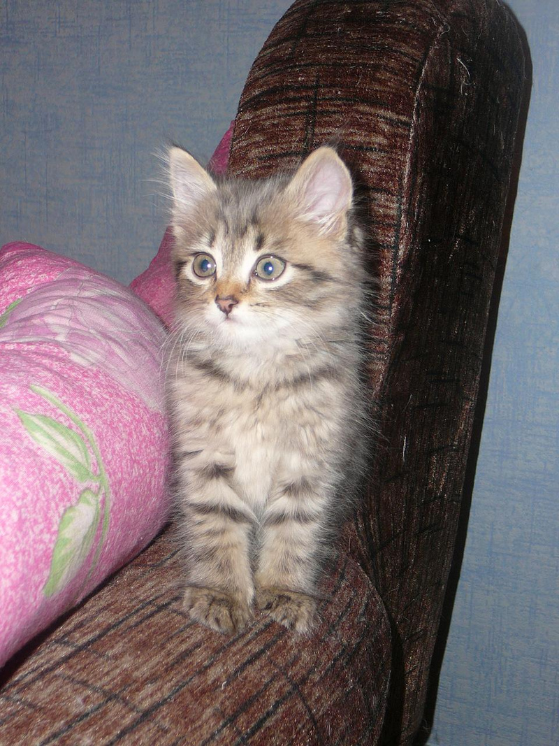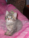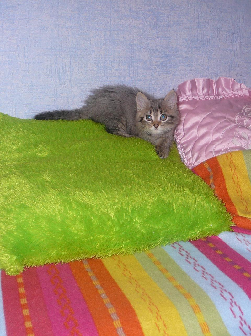 Котенок будет пушистеньким, я думаю. Шерсть очень интересного оттенка - дымчатая и в полосочку.