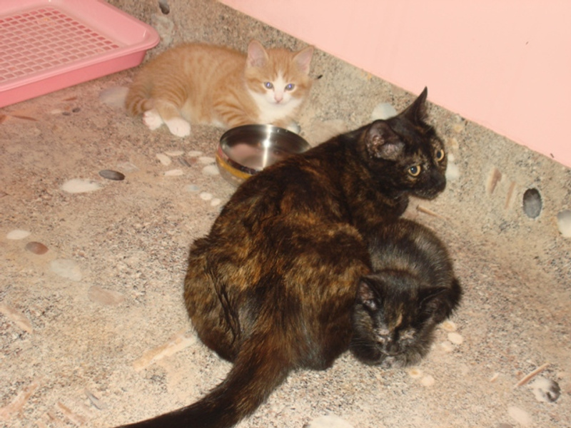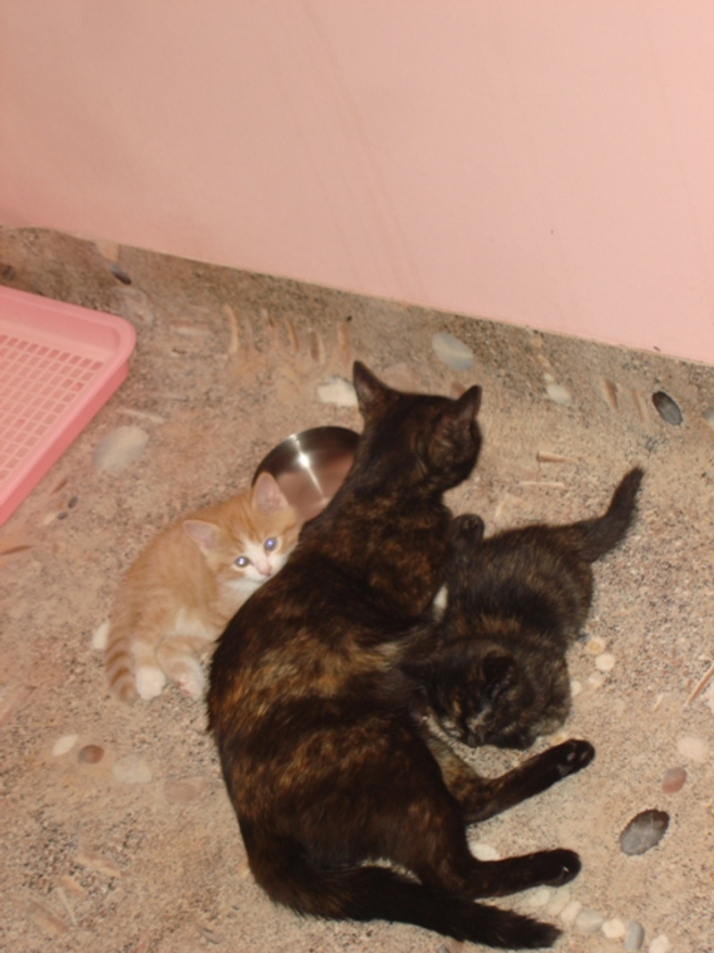 Через знакомых случайно узнала о том, что одна женщина подобрала возле гаражей кошку с пятью новорождёнными котятами. Сегодня сходила, сфотографиловаля кошачью семейку. Котята - прелестные малыши, им сейчас около 1,5 - 2 месяцев. Два мальчика - рыжий с белой грудкой и полностью чёрный. Три девочки- черепаховая (копия мамы кошки), чёрно-белая и полностью чёрненькая. Котятам очень нужны хозяева. Женщина, подобравшая котят хоть и добрая, но совершенно дремучая, собирается котят нести на рынок перекупщикам. Пыталась объяснить ей кто такие перекупщики и что будет с котятами, если она их туда отнесёт. Но женщина свято верит, что сделает доброе дело, отдав котят на рынок. Согласилась всего лишь немного подождать, т.к. я пообещала помочь присторить котят.