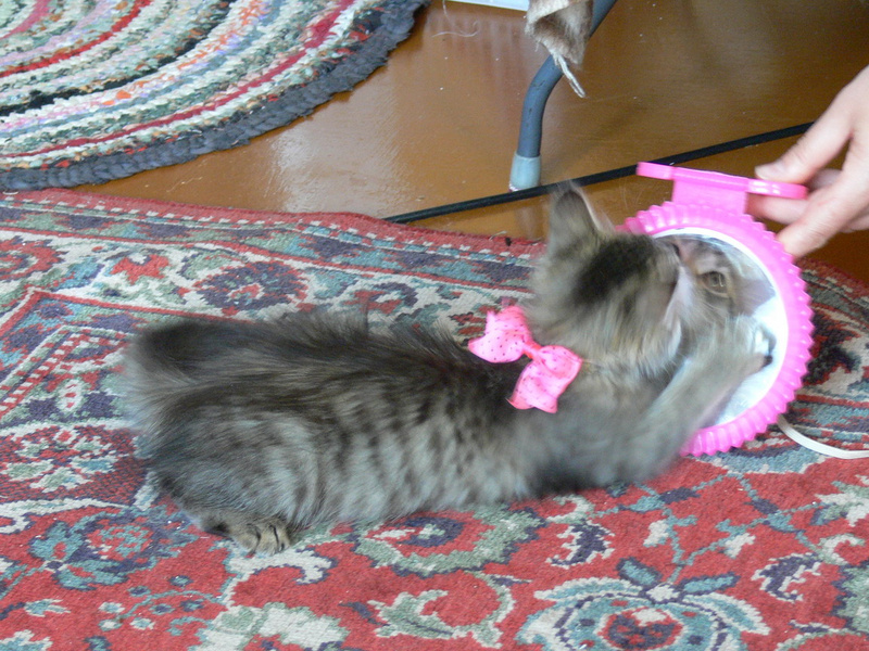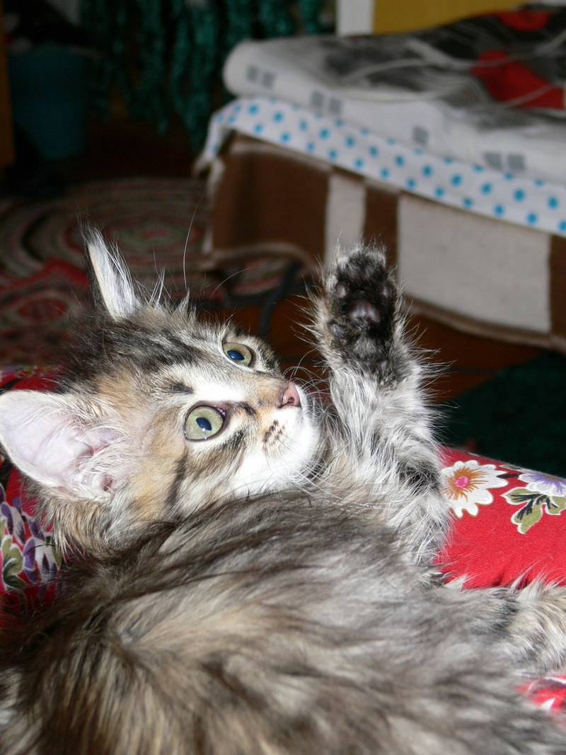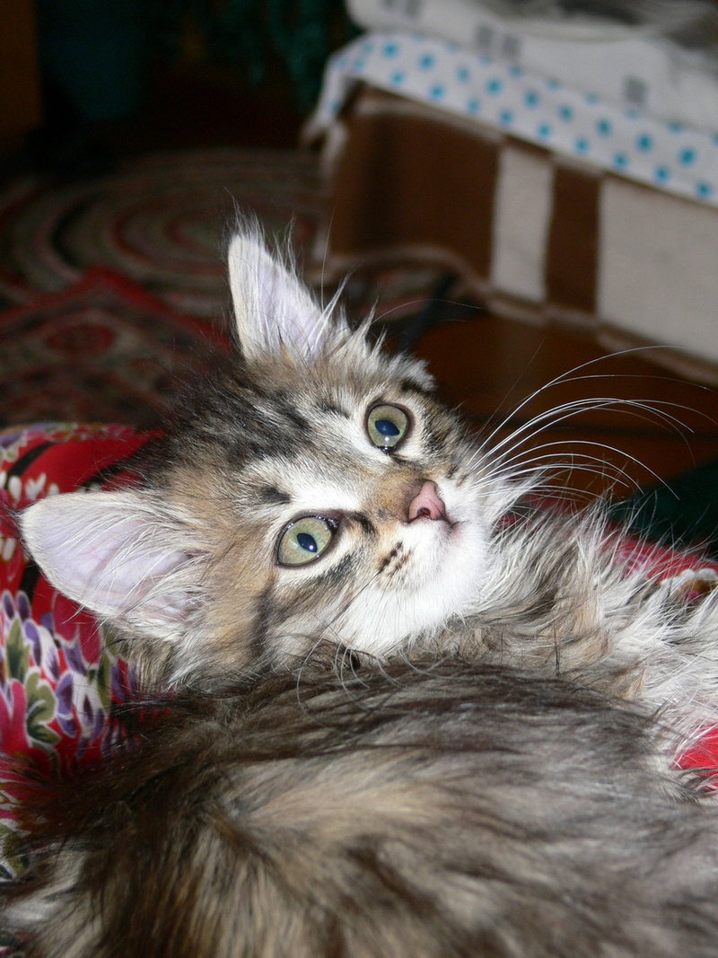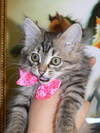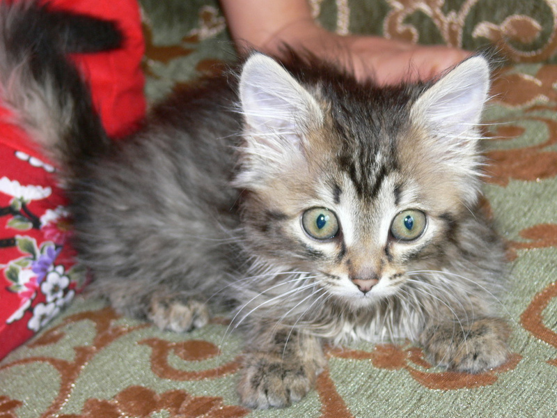 , ее два братика беляка нашли свои семьи, и даже уже освоились.Девочка с здоровой психикой, несмотря на то , что только 3 дня как их подвала очень ориентирована на человека, игривая, мурчащая, в горшок пошла сразу же