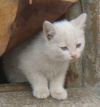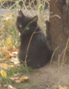 у нее три котенка. два черных и один белый. им около месяца. очень славные.