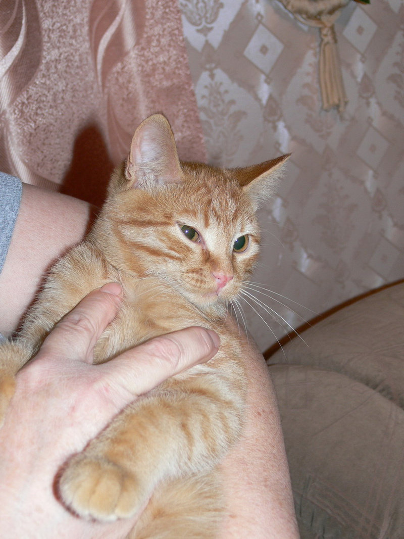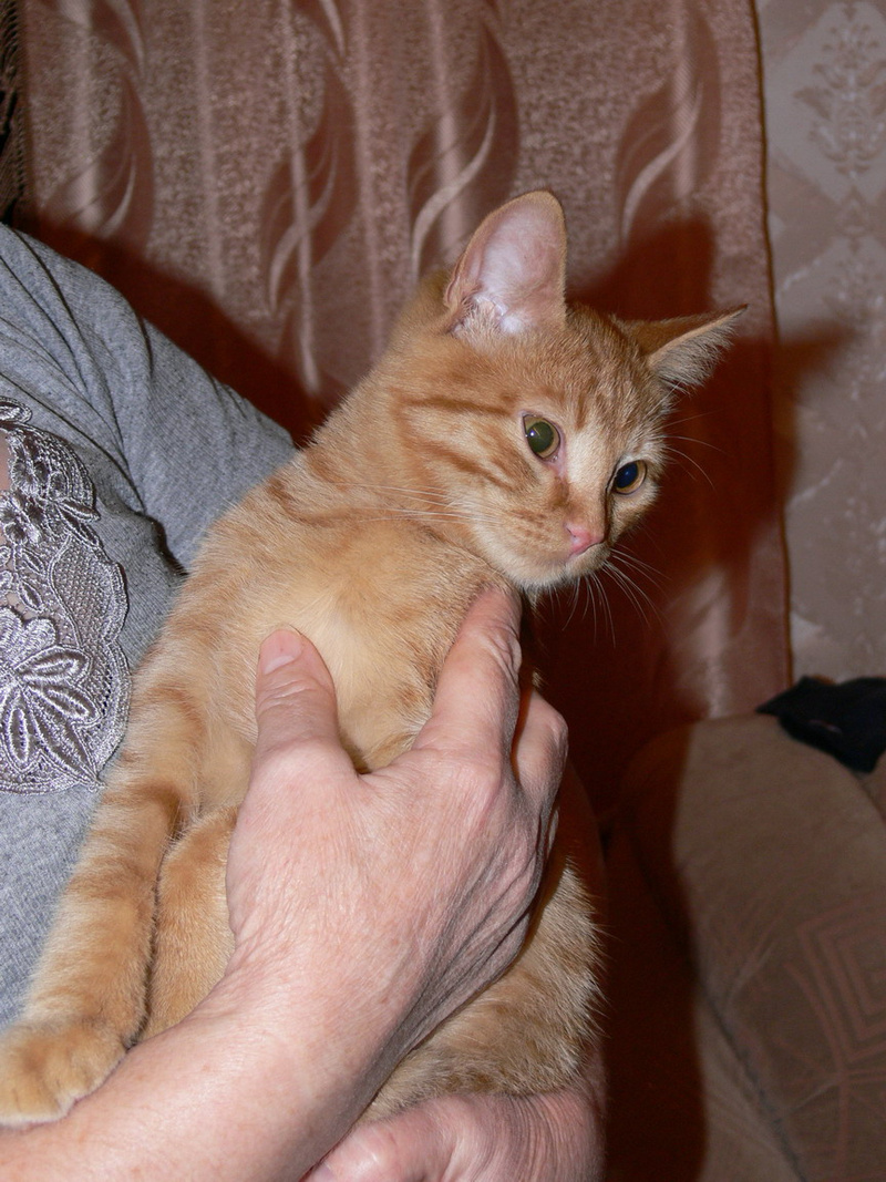Малыш рыжик был точно домашним. Ему 4-4,5 месяцев, он здоров, блох, глистов нет, ушки чистые, с горшком знаком. Пока еще много кушает, встает лапками на дверцы холодильника и пищит.