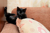 Возраст около 2 мес.Ребятенок очень ласковый, контактный. Обожает гонять игрухи, мурлыкать на коленях и спать на подушке рядом с человеком.