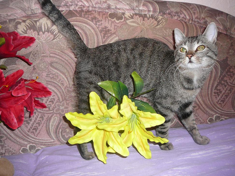 Молодой серенький полосатенький котик, месяцев 8-9 всего, уже кастрированный, очень ласковый, мурчащий, ходит в лоток - и на решетку, и в наполнитель, и на решетку ( а под решеткой наполнитель), кушает ( я б сказала - жрет) все, с ну очень огромадным аппетитом
