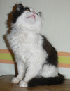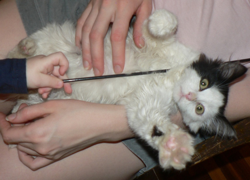 Обычно в дождливую, осеннюю погоду падают с деревьев листья. Вчера с дерева мне к ногам упал маленький комочек, который вцепившись в берёзу, на высоте полуметра прятался от бегающих мимо собак. Грязно-мокрое существо, оказалось котёнком с волшебным характером. В ней сочетаются качества, как ненавязчивость и готовность быть рядом по первому зову, дружба с лоточком, и самые мои любимые !!! молчаливость и плюшевость (можно тискать и тискать)
