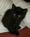 Чёрный котёнок 1,5 мес. от пушистой мамы ищет хозяина.