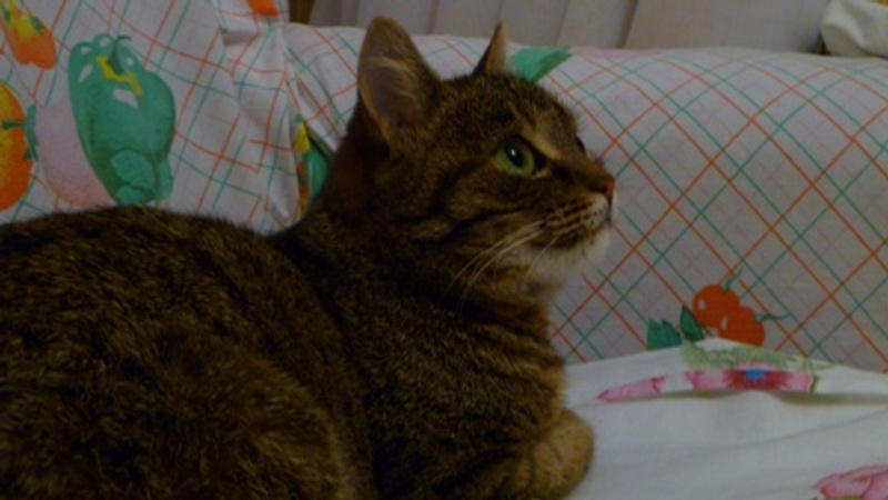 У котьки очень интересная шубка - ее можно было бы назвать "агути", но узора из пятен и полос почти не видно, и своим окрасом она напоминает ёжика!
