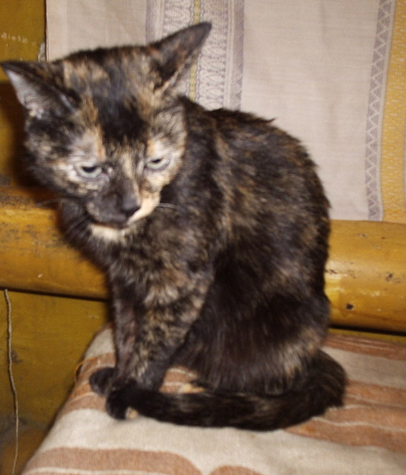 Молодая, стерилизованная кошечка черепахового окраса ищет дом. Она робкая и застенчивая, поэтому очень стеснялась фотографироваться..