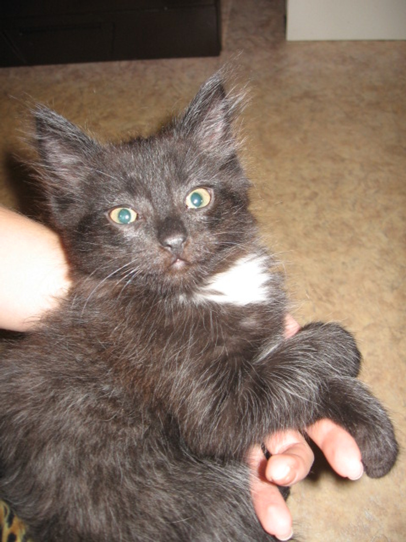Возраст - не больше 2х мес. Окрас черный, белая манишка, пузик белый, маленькие белые носочки на задних лапках. Сейчас как-будто с сединой, думаю израстется и будет ярко-черный, средней пушистости. Пишите ЛС или в тему.Исправлено пользователем Rijik (14.12.10 20:56)