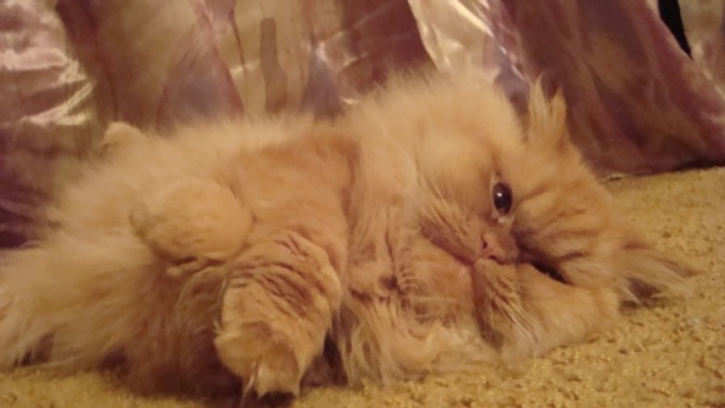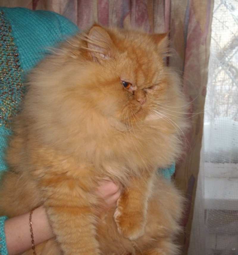 Желающим завести перса, необходимо помнить, что эта порода нуждается в ежедневном уходе - нужно вычесывать шерсть, иначе будут колтуны, и протирать глазки. Боня легко переносит эти процедуры.