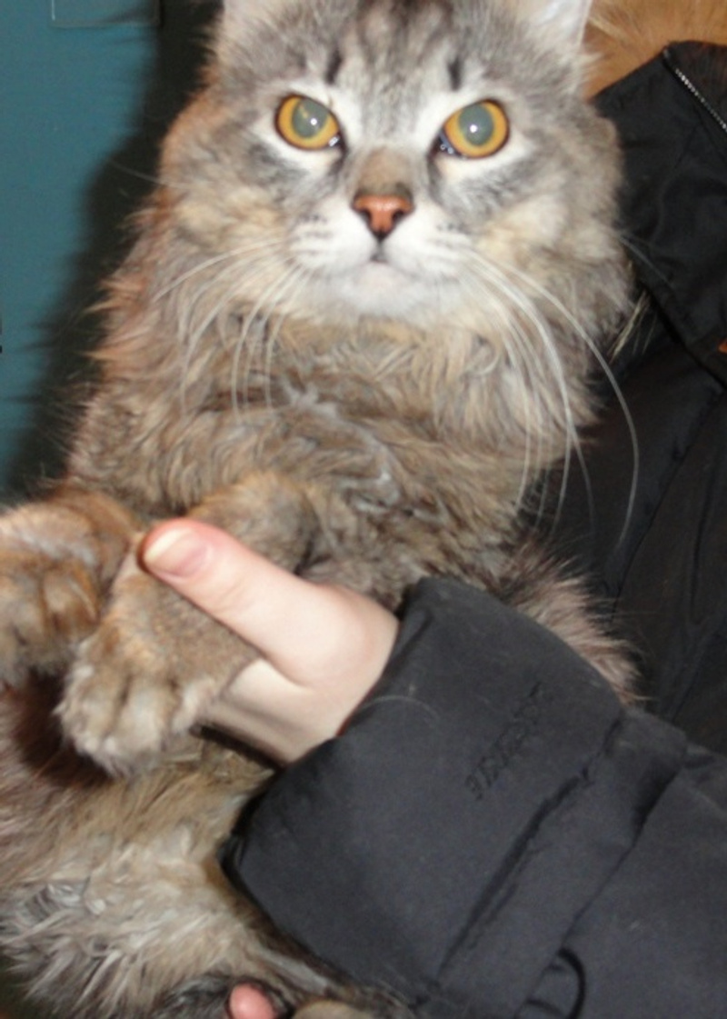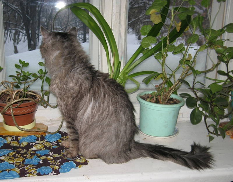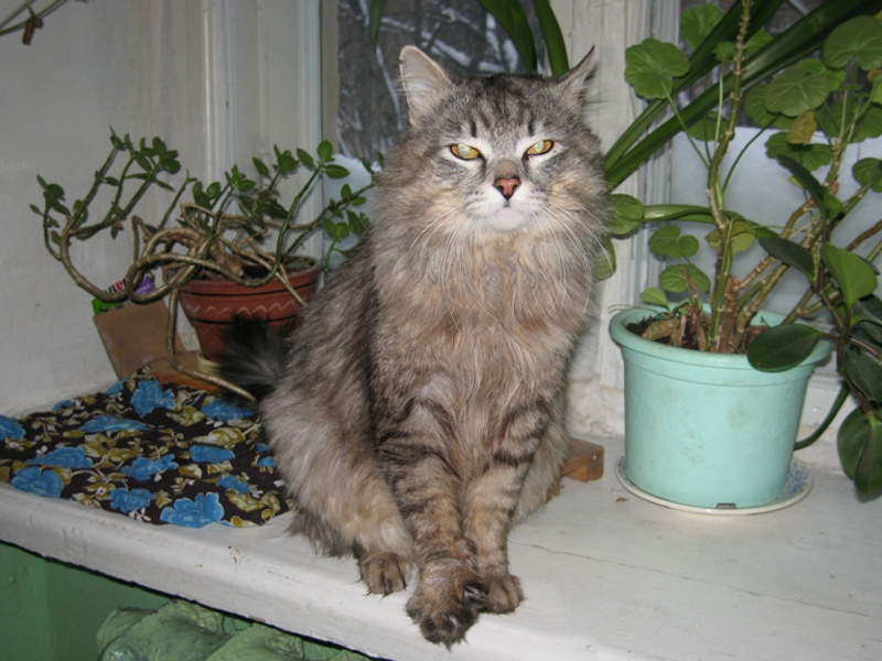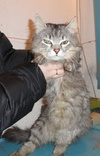 Сегодня съездили его сфотографировали, кот ооочень большой, прямо гигант , на верхних фотографиях этого не видно, но когда сегодня я его брала на руки-это просто огромное чудо, с длинюшими усищами, шикарными янтарными глазами, что-то в нем породистое есть явно (может даже сибиряки) Просто отлично сдружился с двумя собачками, которые вместе с ним находятся на передержке. Еще очень меня поразила его шерстка, очень густой подпушек. По характеру, как я и писала, кот очень ласковый, даже к чужим людям, идет легко на руки, дает легко себе почесать шейку, крайне любознательный, фотографировали, а он все вокруг пытался обнюхать и обследовать, окрас у него также интересный, именно серебристый, что не так часто и встречается. Звонить по котику можно также мне - 8-913-390-55-91 Татьяна.