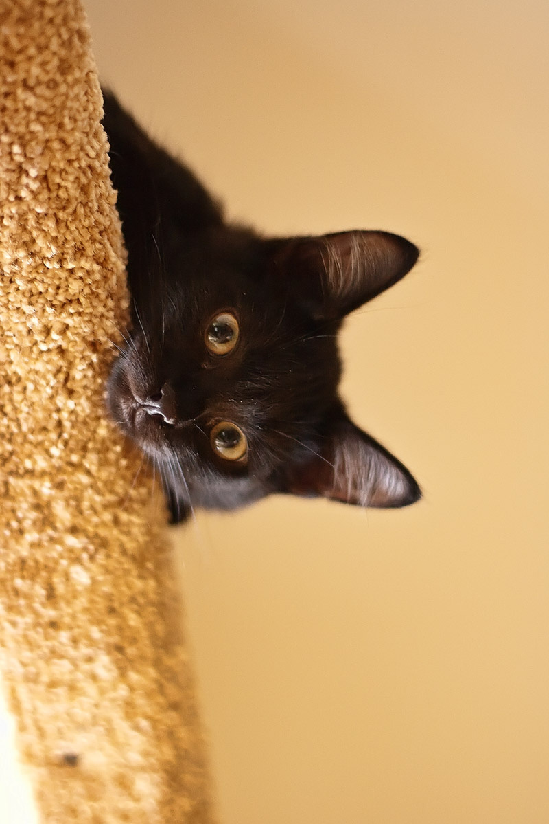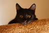 Ищу заботливых хозяев для чёрного котёнка мальчика. Ему 4 месяца. Гладкошёрстный. Лоточек знает на "5+".