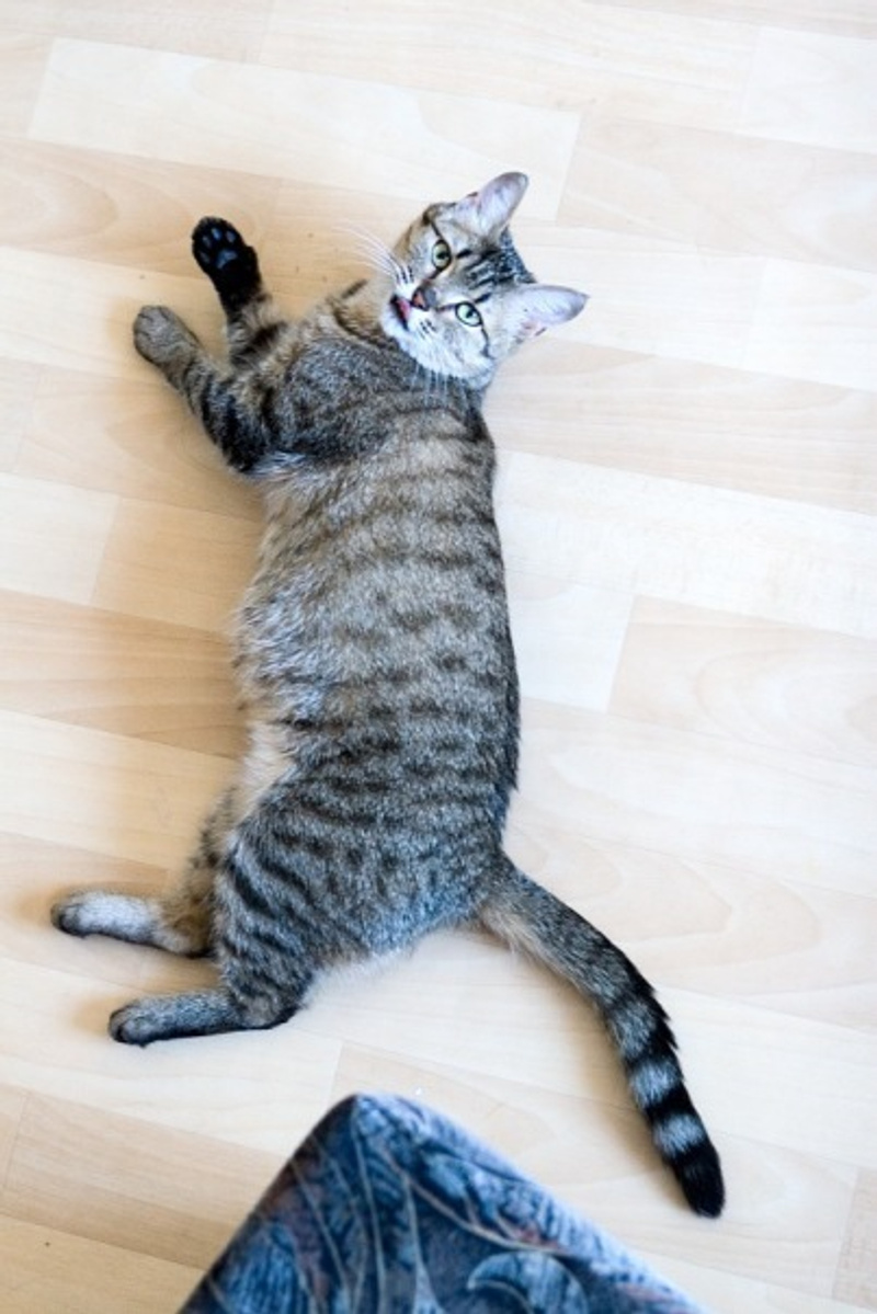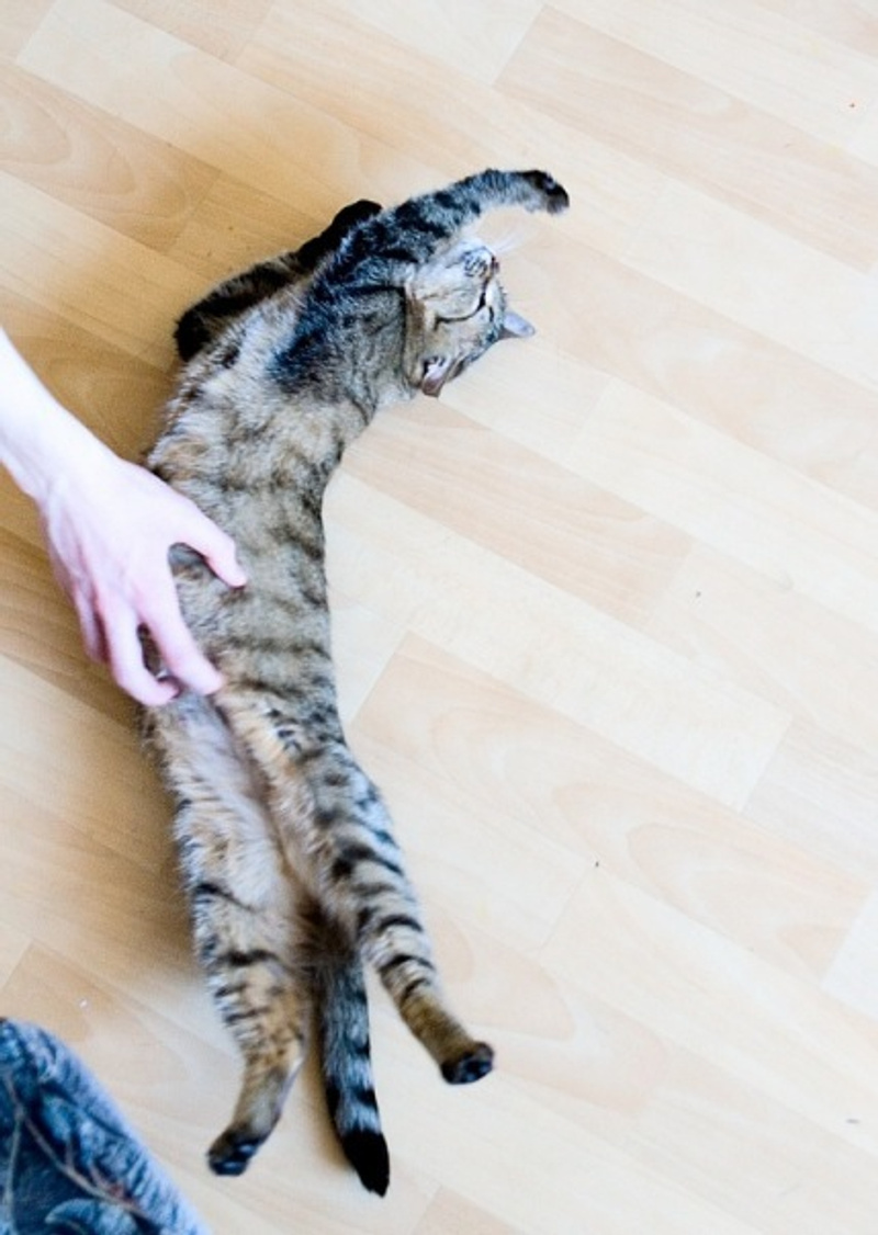 здесь . Маруська она сейчас потому, что выглядит как подвальная маруська), была вообще ужасно грязная. Когда её мыли - отчаянно сопротивлялась. Шерсть пока не очень, хребтина такая, что можно прощупать каждый позвонок. Хотя истощавшей впечатление не производит. Но кошка с такой конституцией могла-бы быть и поплотнее. А конституция у неё очень интересная - крупная голова, кругленькая морда, толстенькие лапки. В-общем, не просто так всё)), чувствуются какие-то очень отдалённый британские или персоидные корни. Окрас тоже вроде обычный, но не совсем - сама агути т.е. серо-рыжевато-полосатая, а лапки... то, что называется "чёрный дым", только дым в нашем случае - рыжевато-серый, в общий тон тела. Когти и подушечки лап тоже чёрные, а вернее тёмно-коричневые.