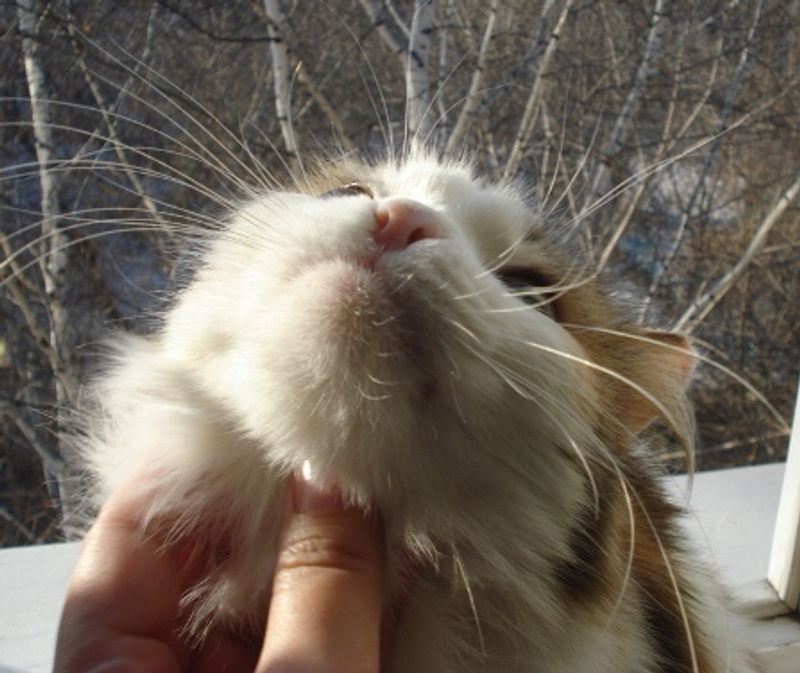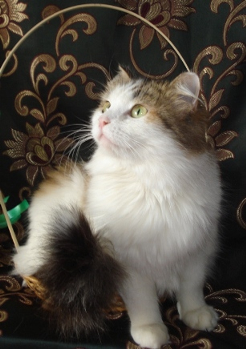Абсолютно ручная, домашняя, не навязчива, умна и грациозна. Ее обаяние всеобъемлюще, не было ни одного человека, который, зайдя в гости, не попал бы под ее чары. Пушистая трехцветка умеет к каждому человеку найти свой подход: к одному залезет на руки, к другому прислонится бочком, с третьим помуркает о чем-то своем. Этой кошке пришлось пережить предательство своих предыдущих хозяев, но она не потеряла своей доверчивости и любви ко всему человечеству. Терпима к другим животным, прекрасно знает горшок, чистоплотна. Ветеринар сказал, что она абсолютно здорова, лишь немного поморожено ушко. Кошка плотного телосложения, поэтому даже в неоткормленном состоянии весит почти 4 кг. Эдакая пушистая подушечка.
