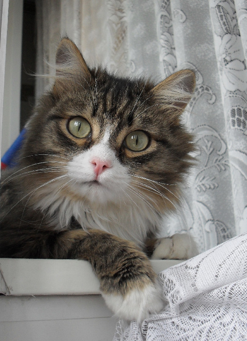 Кузя очень умный мальчик! Он с первого слова понимает - что можно делать, а что нельзя. Он спрашивал у меня разрешения запрыгнуть на диванчик, он долго не ходил по пушистому коврику - пока я сама его не позвала, он четко ходит в лоточек - без промахов.