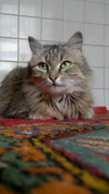 Муся, ей примерно 3 года, она стерильна, с горшком на 5, она очень игривая и озорная. Шерстка у нее блестит и лоснится. Ласковая, но ненавязчивая, с большой надеждой обрести настоящего хозяина.
