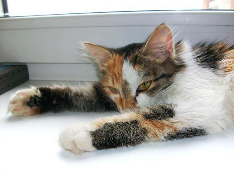 Очень ласковая девочка с розовым носиком и пяточками. Осмотрена врачом - здорова, завтра будет проглистогонена.