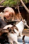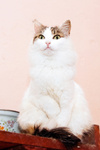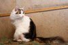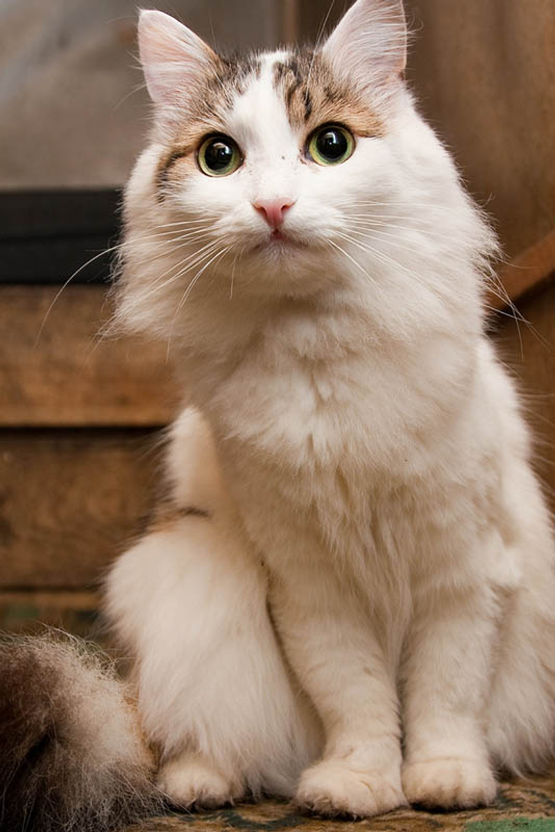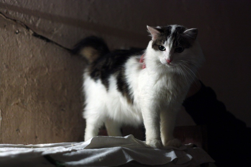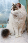 Пушистая, с выразительными зелеными глазами, белоснежной шерсткой на теле и черепаховыми пятами на моське, спине и хвосте. Зовут Тома ей приблизительно 2-3 года. По характеру спокойная, ласковая, но ненавязчивая, чистоплотная.