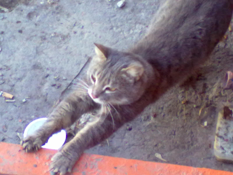 У нас во дворе в подвале живет прелестный котик. Живет с начала зимы. Был в ошейнике, видно что домашний и потерялся. Чистенький и толстенький, теперь мы подкармливаем его, но я считаю ему нужна семья, он за всеми бежит и в глаза заглядывает. Жалко его очень, но у меня есть кошак уже.