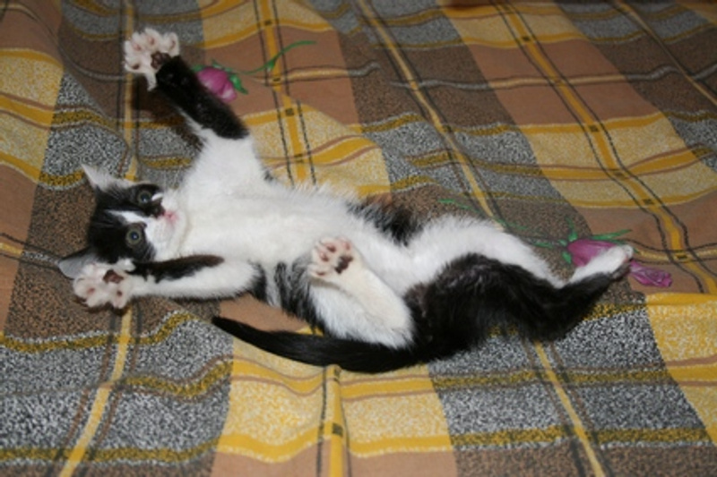 черно-белая котейка возрастом прибл. 2 мес ждет самых лучших хозяев))).