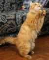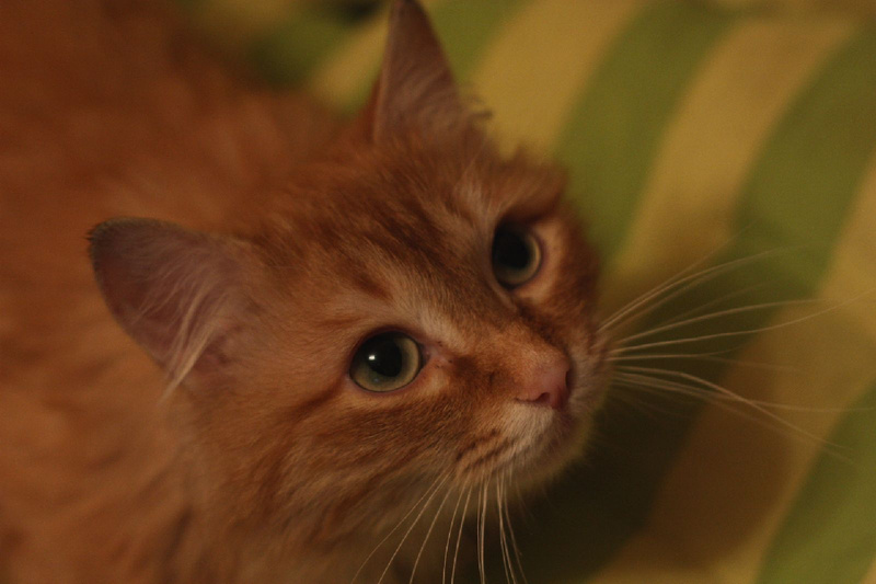Рыжик неприхотлив в еде, ест все, что дают, но сейчас питается сухим кормом, а в туалет ходит строго в лоток.