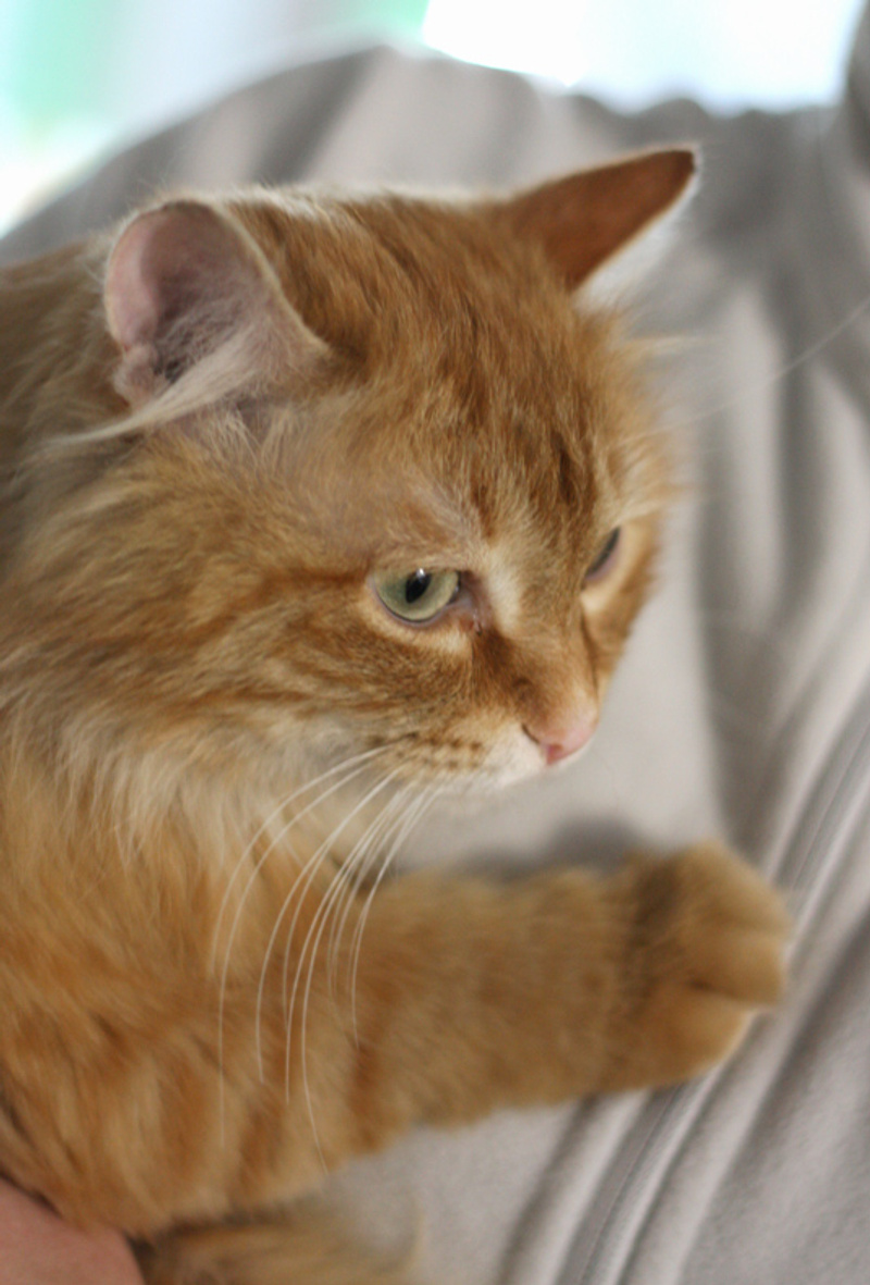 За последние 2 недели котик очень похорошел, шерстка стала мягкой и пушистой, а глазки ясными и чистенькими. За это время также раскрылся истинный характер Рыжика - это идеальный кот, он не портит мебель и обои, ходит строго в лоточек, очень любит играть, но при этом когти не выпускает, терпеливо переносит различные манипуляции над собой. Вот наш красавец: