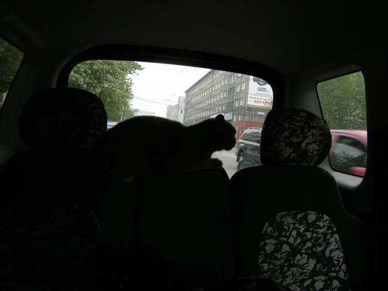 А потомм она перебазировалась на заднее сиденье, и умастилась на верхушке сиденья, как ей было там удобно - остается загадкой