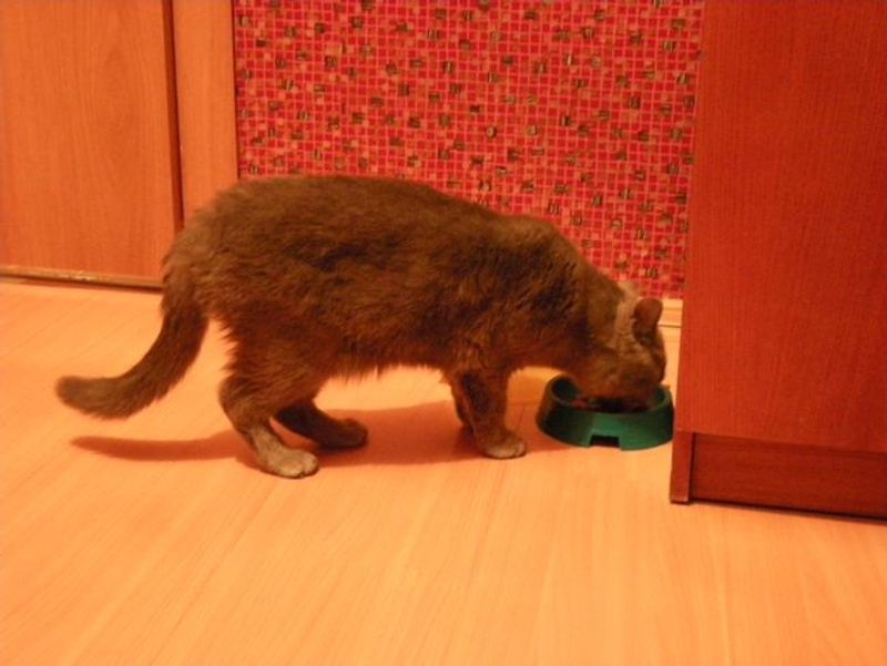 Пока она скиталась на улице - сильно исхудала, весит около 2,8 кг. при своем возрасте около 5 лет. Зубки в неочень хорошем состоянии, несколько выбиты.