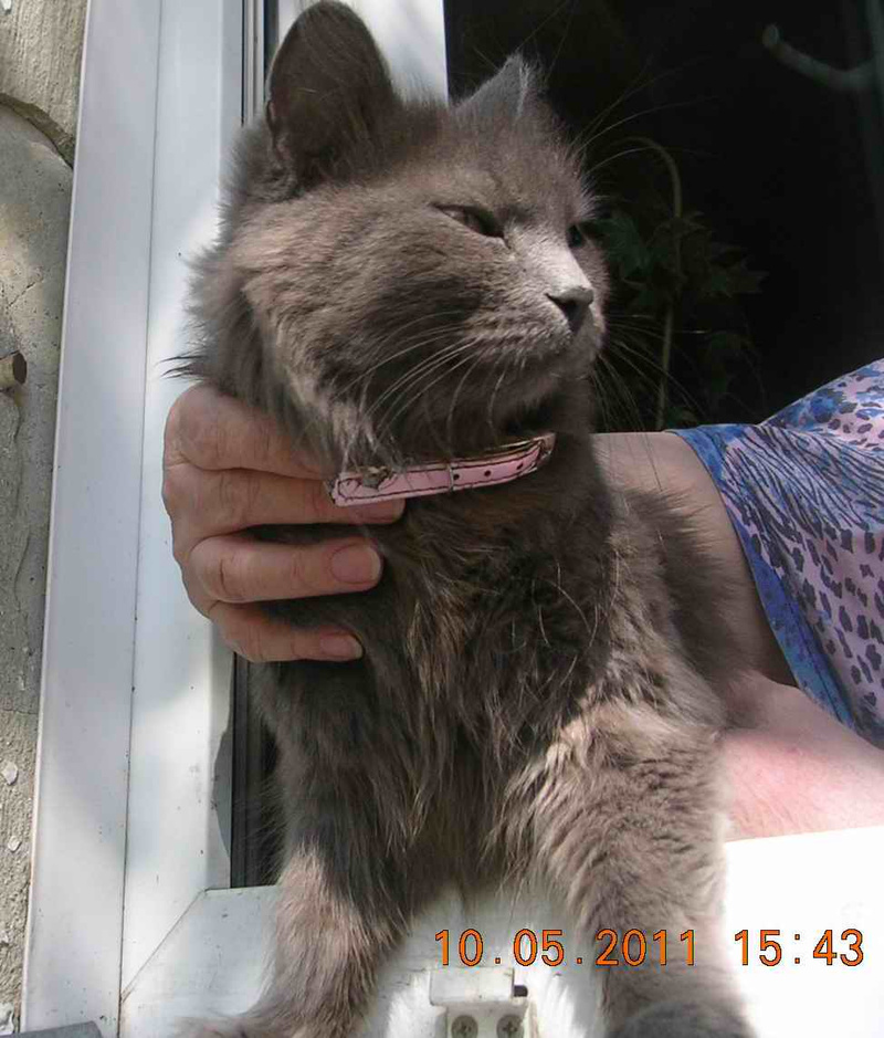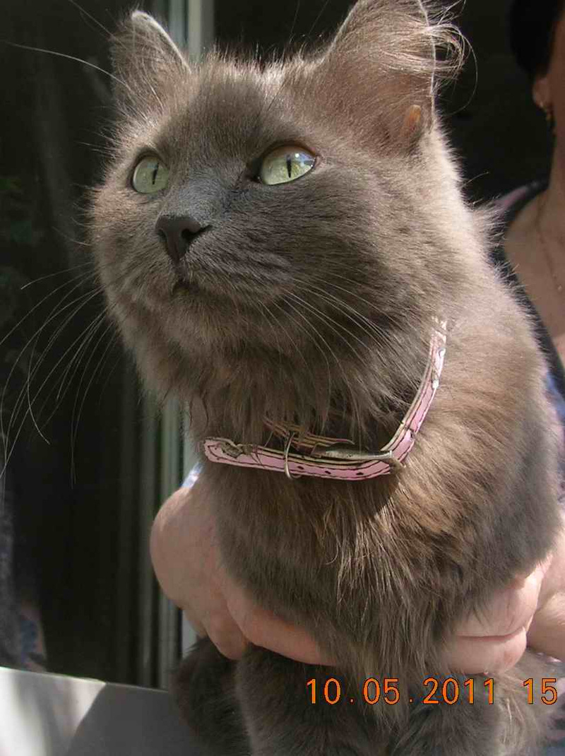 на Волочаевском ж/м найдена серая дымчатая пушистая кошечка в двух ошейниках - черном против блох и в розовом (кожаном?) со стразами. Худенькая, напуганная, голодная, очень громко плачет. Мы ей дом вроде нашли, но, может, хозяева её ищут?