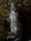 Вот что о них пишет хозяйка:"Одна серая, полосатая, а вторая темненькая, но не полностью черная, с рыжими подпалинками и двумя белыми пятнышками на пузике. Серенькой мы дали имя Фрося, она активная, открытая, игривая, мамкина любимица. Темненькая более сдержанная, замкнутая, ее доверие надо еще завоевать,очень своенравная,но зато бесподобно красивая. Вместе играют отлично, бесятся, прыгают, носятся по всему дому. К лотку мы их приучили. Едят вместе с кошкой, кормами мы их не кормим, обычная еда со стола.Конечно,может быть неправильное питание для котят, но проблем с пищеварением нет, в туалет ходят регулярно и как надо." Телефон для связи 89237012554 Ольга.
