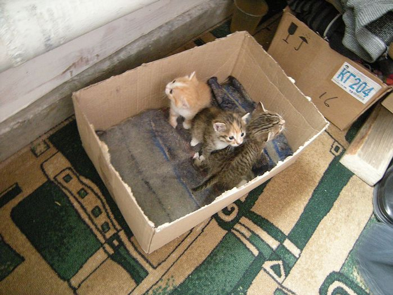Но, мир не без добрых людей! Их нашли, обогрели, выкормили. Малышня даже не представляет, что их могло ожидать. Сегодня им около месяца, они подрастают, хорошеют, познают окружающий мир, пытаются вылезать из коробочки, где спят. Но пока не получается, они ещё малыши, чтоб преодолевать такие преграды.