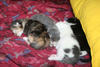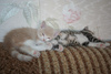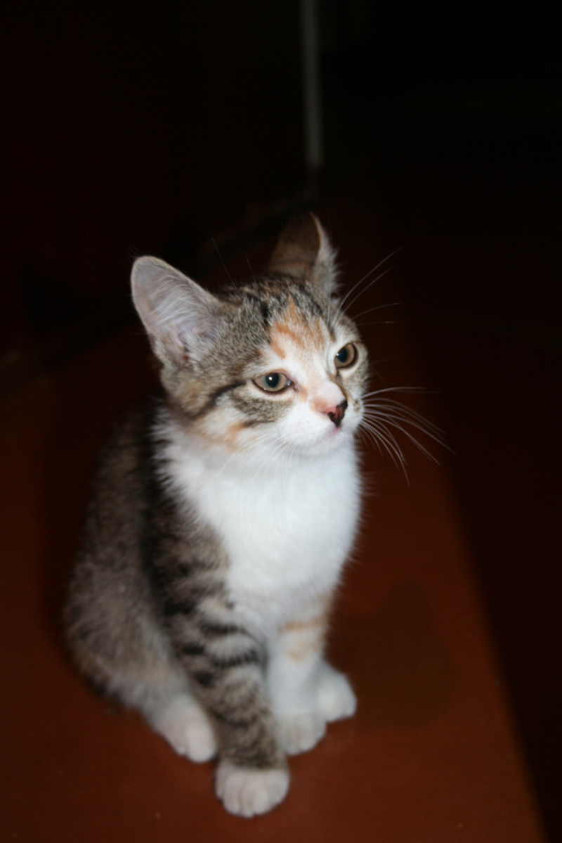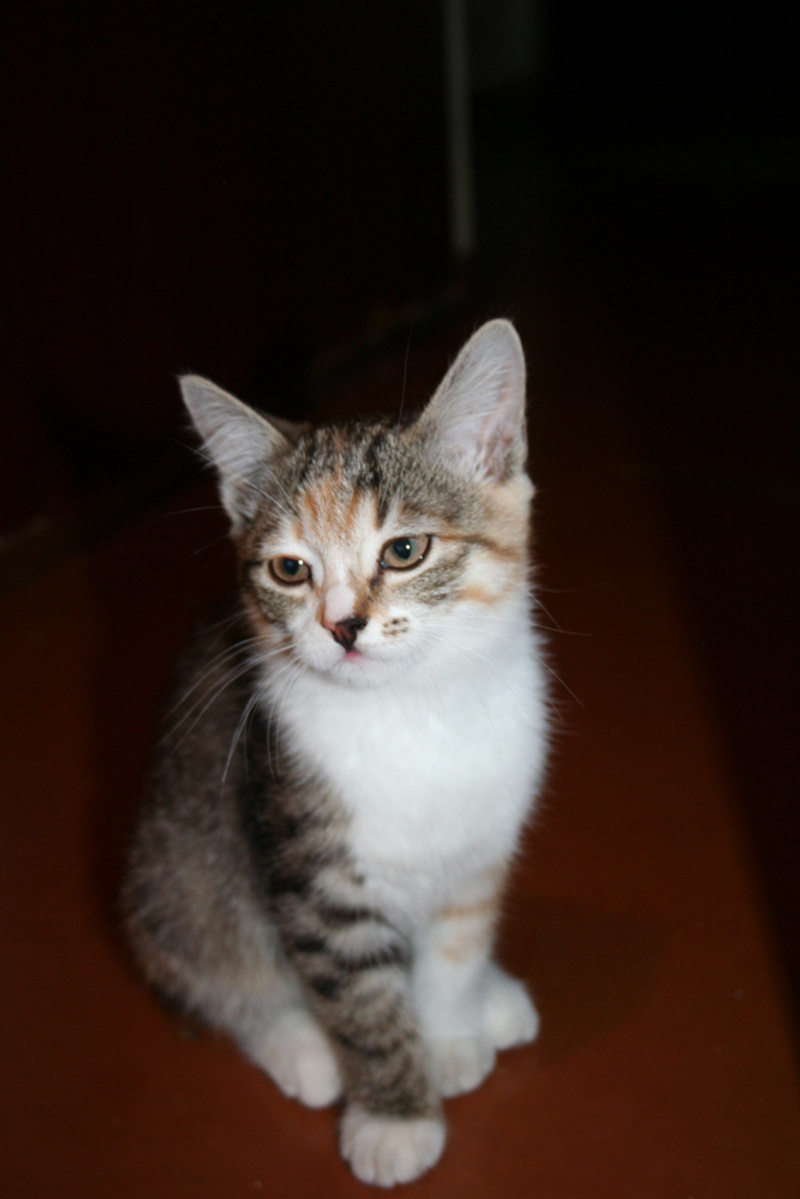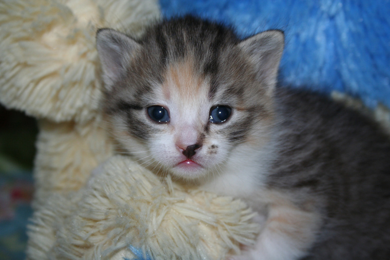 Фото № 1 и № 2. Пол - женский. Возраст - 3 недели. Кодовое имя - Серенькая. Расцветка - счастливая (т.е. трехцветная). Телосложение - миниатюрная (самая маленькая из всех агентов). Характер - задористый. Активна и весьма самостоятельна. Не смотря на свой небольшой размер, имеет преимущество перед своими соратниками в заданиях с целью захватить объект под названием "мамкина титька". Особые приметы - двухцветный носик.