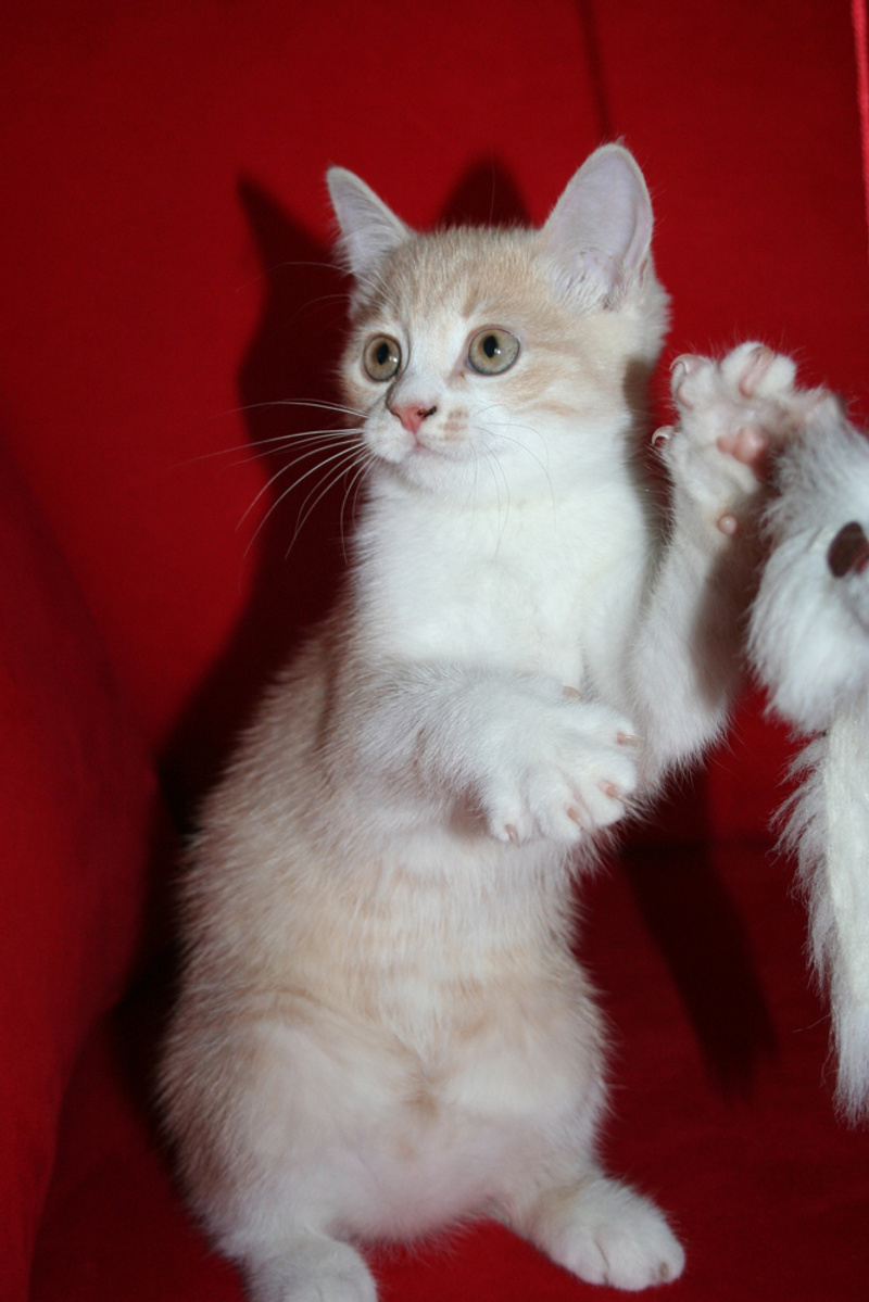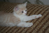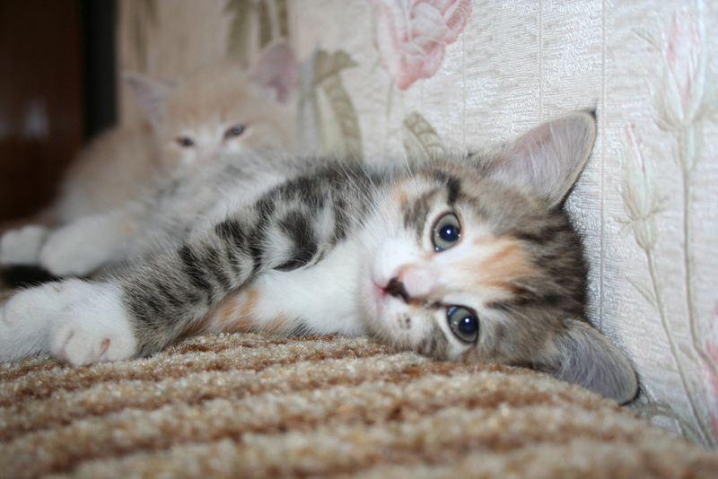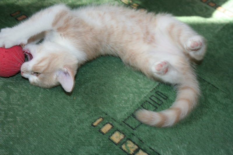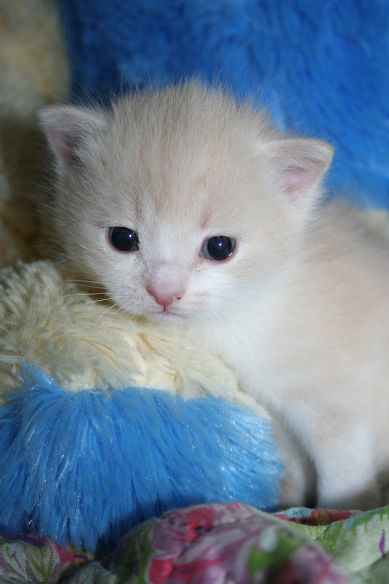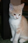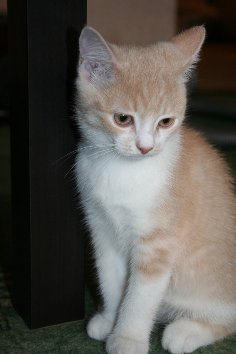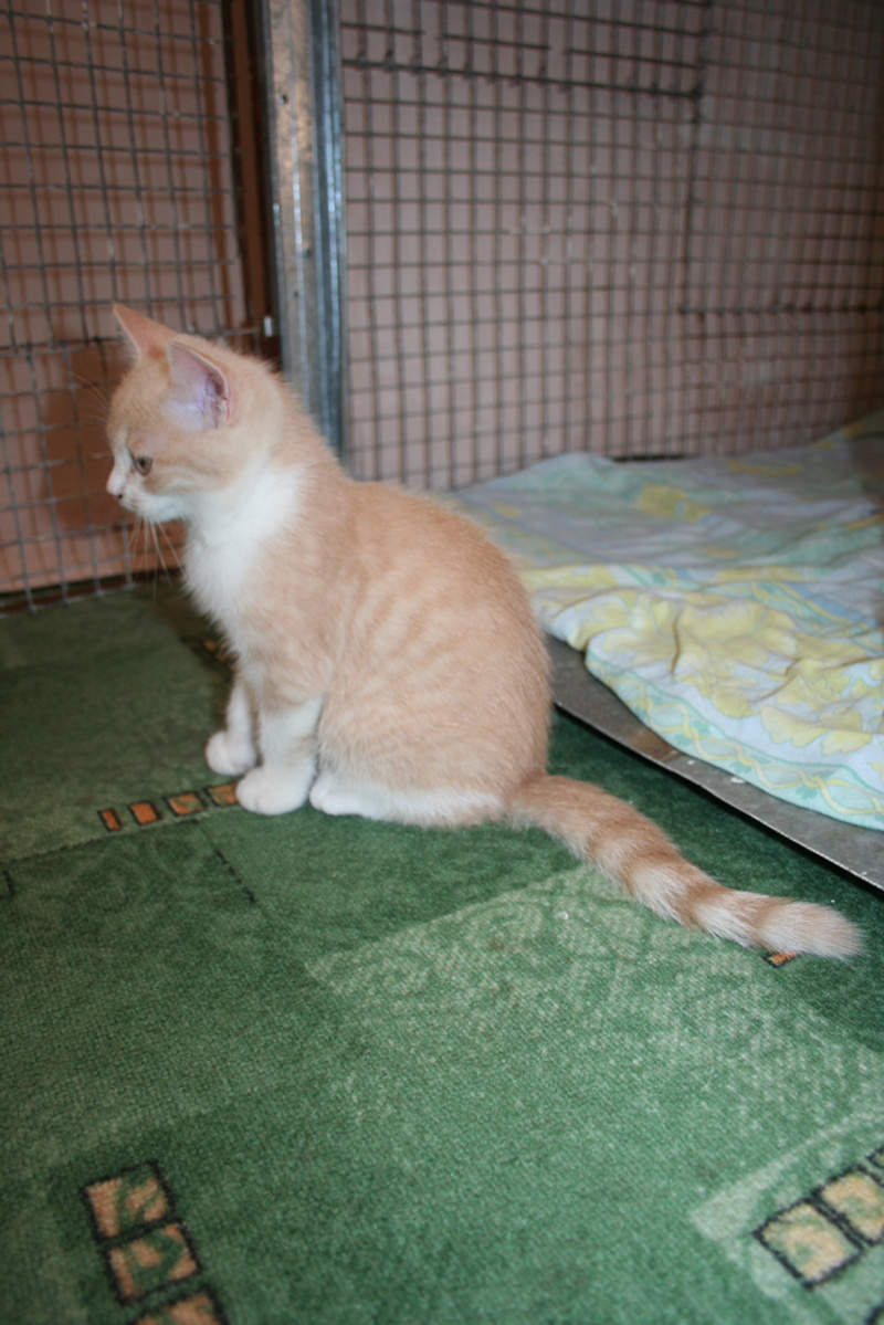 Фото № 3 и № 4. Пол - женский. Возраст - 3 недели. Кодовое имя - Персик. Расцветка - персиковая Телосложение - упитанная, потенциально пушистая (судя по шёрстке). Характер - дружелюбный. С двухнедельного возраста начала играть и с себе подобными, и с представителями человеческого рода. Особые приметы - весьма редкий для особ женского пола окрас (кошки с оттенком рыжего/персикого цвета встречаются 1 на 1000).