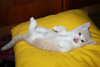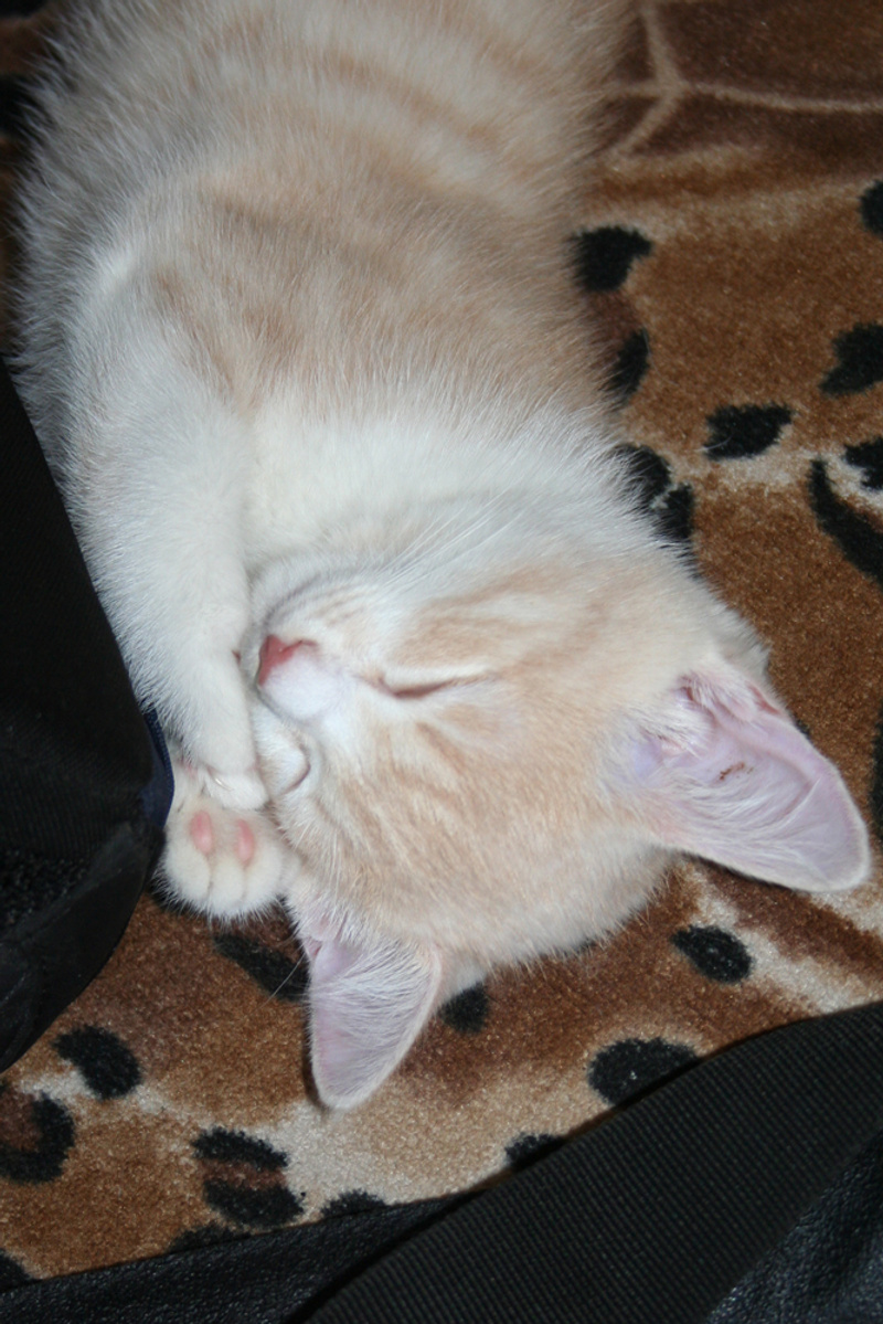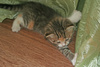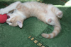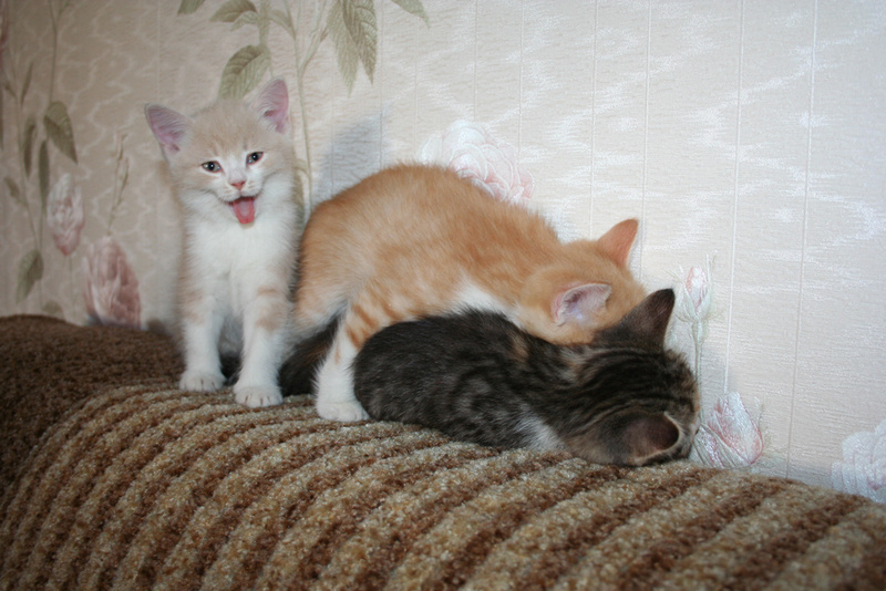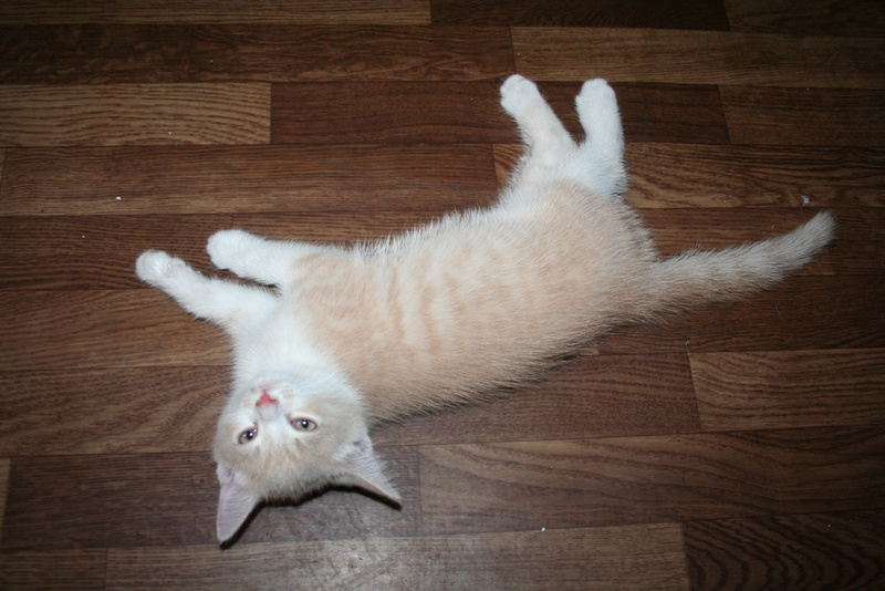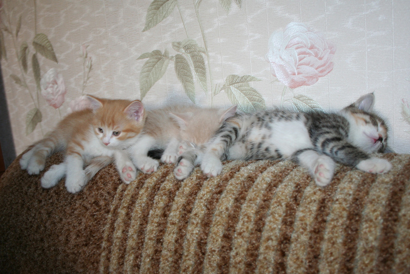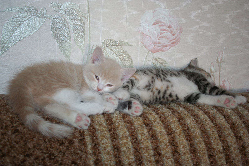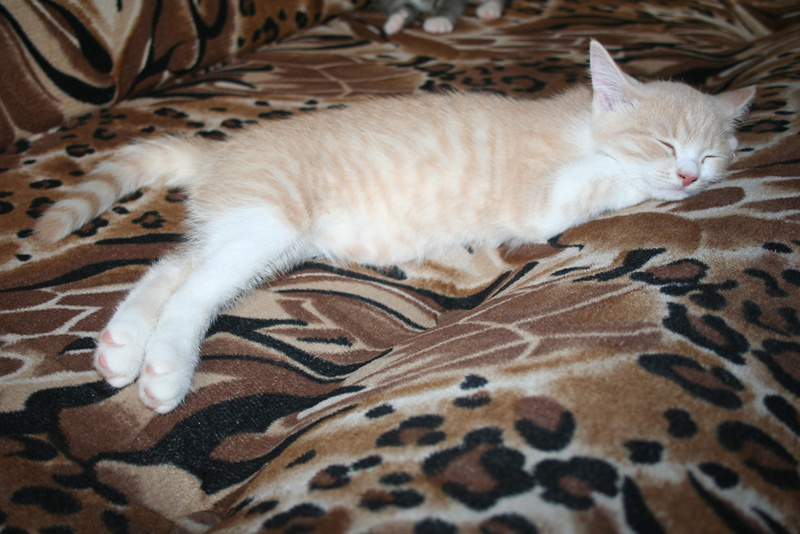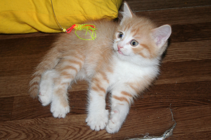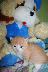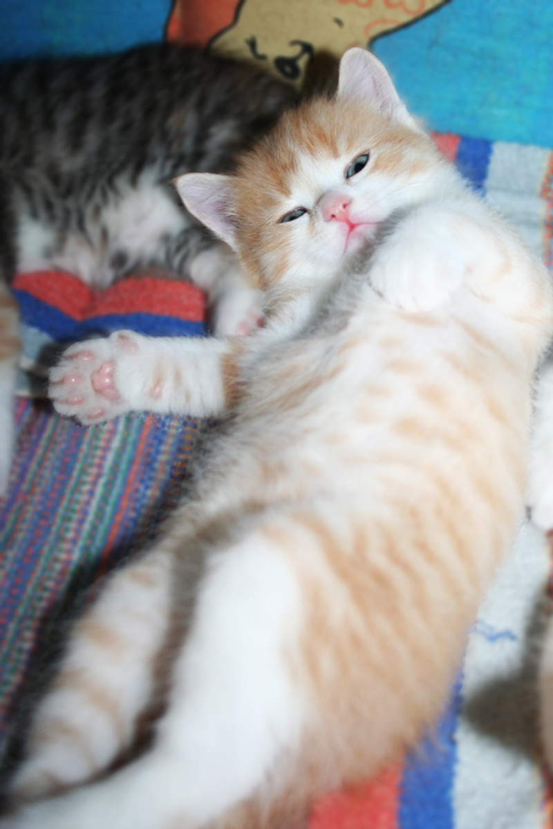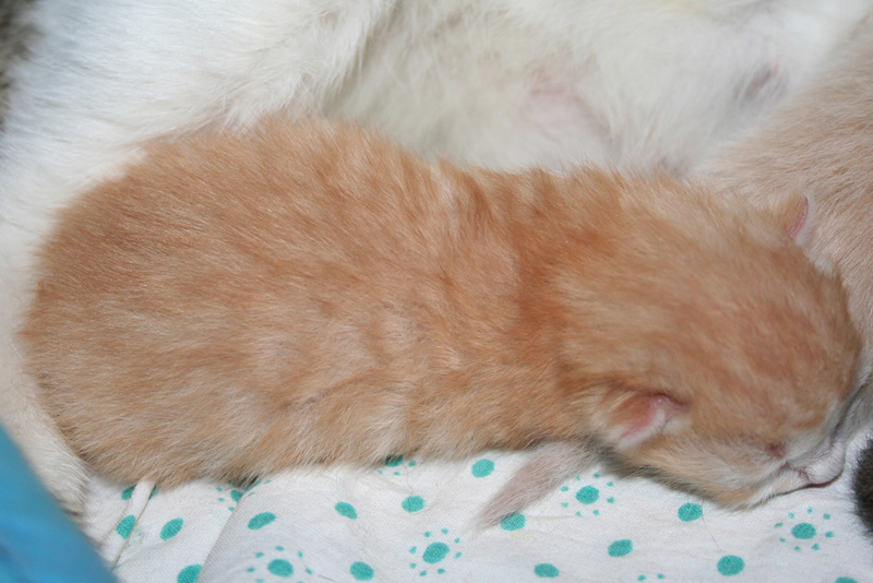 Фото № 5 и № 6. Пол - мужской. Возраст - 3 недели. Кодовое имя - Рыжик. Расцветка - рыжий Телосложение - мужественное. Характер - вольяжный. Во время операций, проводимых другими котятами, Рыжик проводит операцию под названием "не будить, не кантовать, при пожаре выносить первым". Особые приметы - яркие полоски по всему телу, за исключением задних лапок.