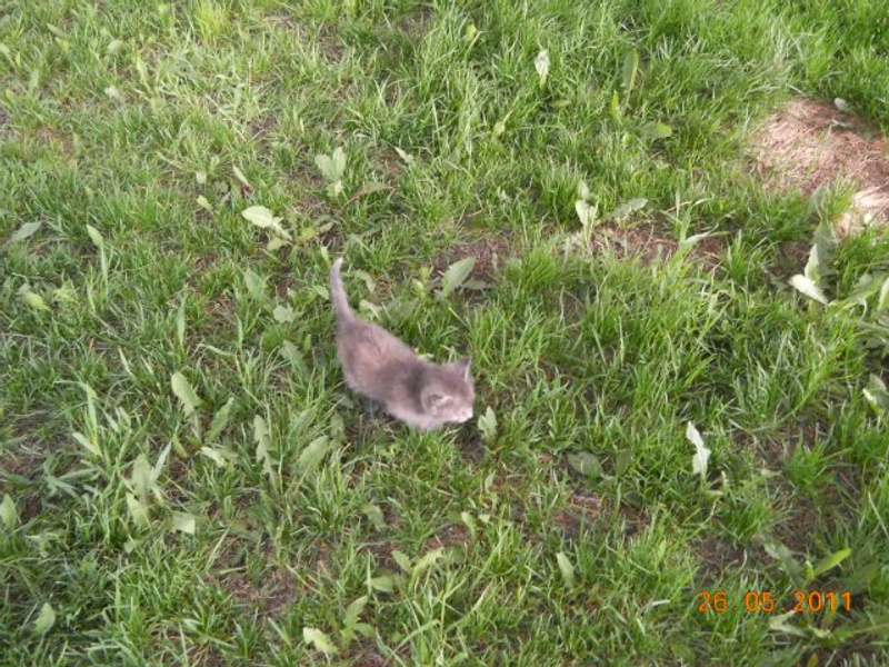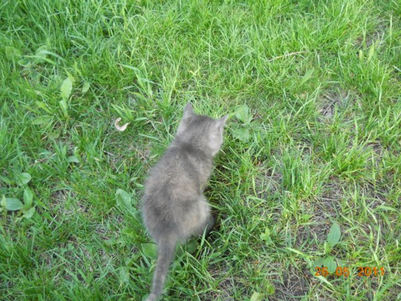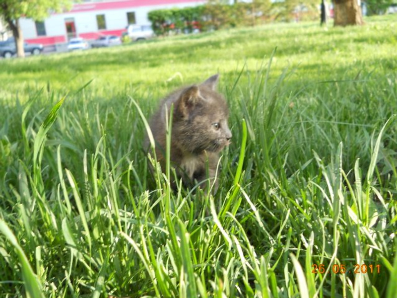 Гуляли со своей кошкой, услышали мяукание, сидел "товарищ" под машиной, явно брошеный, тк рядом видимо подкармливали - лежала еда.