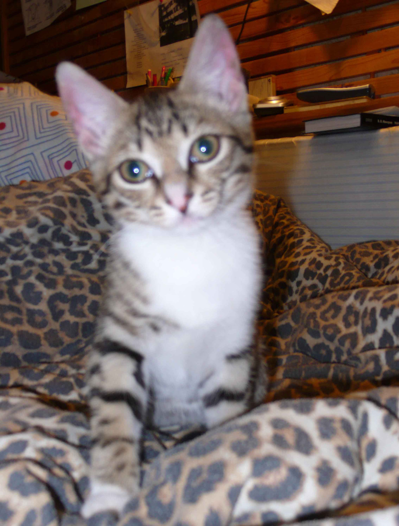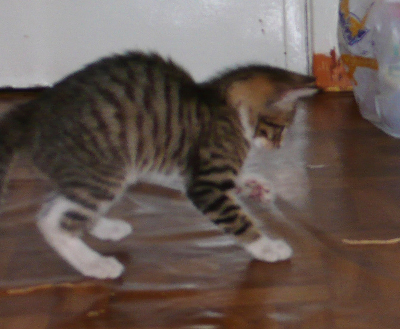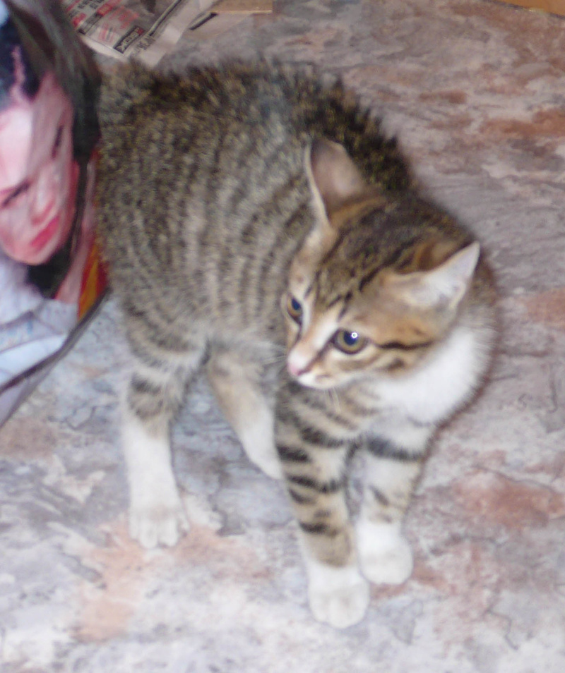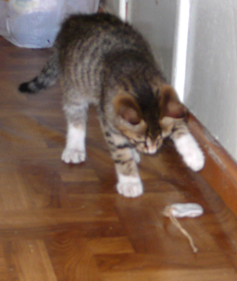 Котенок около двух месяцев от роду, подобран на улице, т.к. очень убедительно требовал посодействовать. Кот. судя по всему, был домашним: очень быстро распознал кошкин лоток; по всей видимости, знал где искать кухню. очень игрив, деятелен. пока еще часто плачет - я думаю, тоскует по кошке. О-очень забавный. В минувшую субботу была поставлена прививка Вакдерм, реакции пока нет. Пока изолирован от моей кошки, скучает. В мои планы второе животное заводить не входит, поэтому ищем хозяев