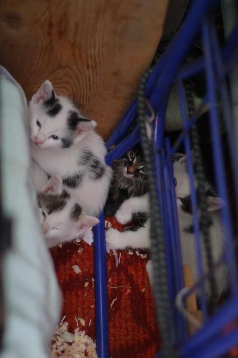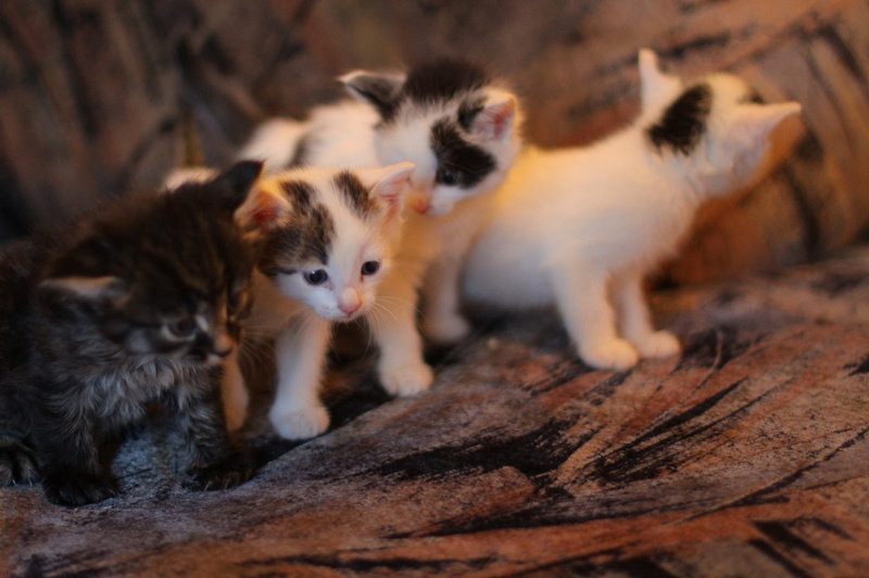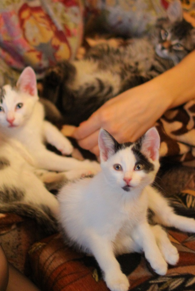 Три беляшика с чёрных пятнышках - одна кошечка и два котика (с ними был ещё четрвёртый братик-котик, но по нему отдельная темка )
