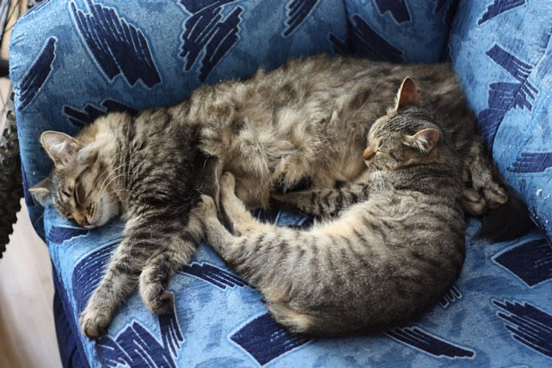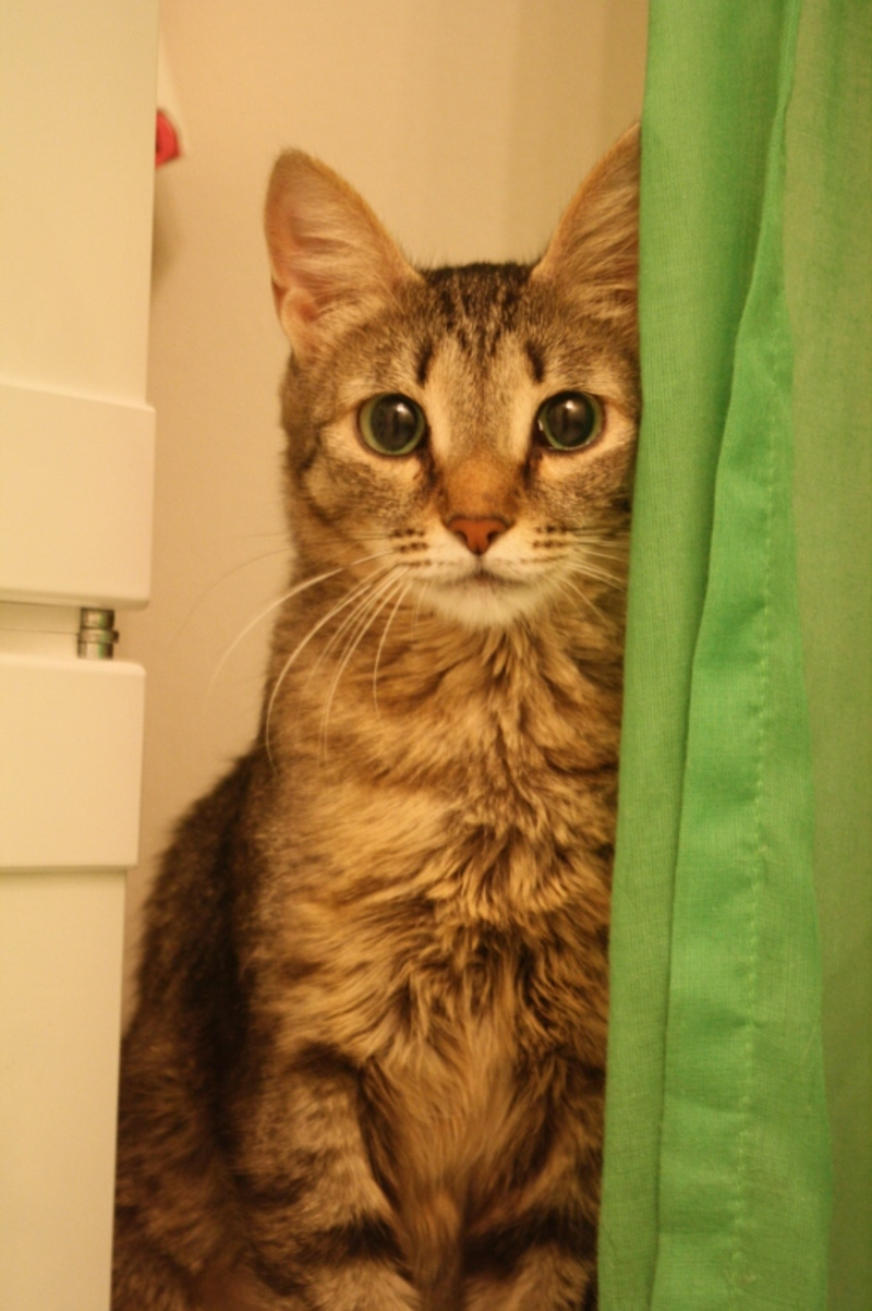 Она жила у бабушки в большом кошачьем коллективе, поэтому она отлично ладит с кошками.