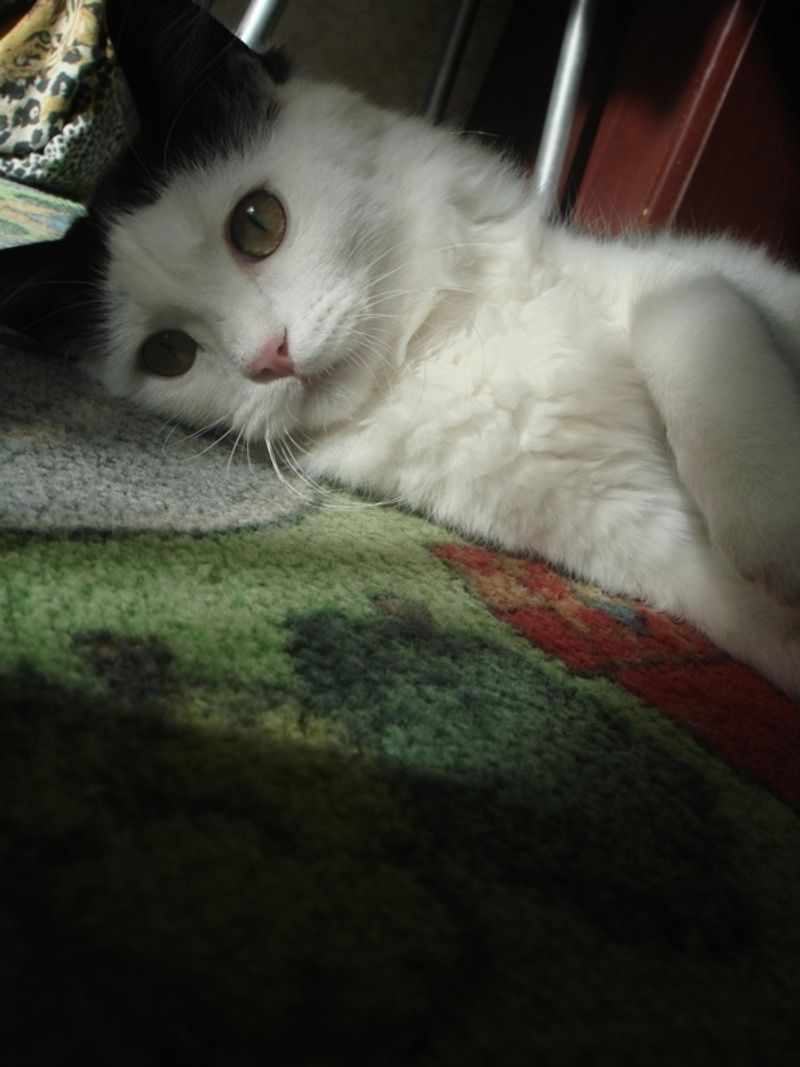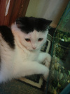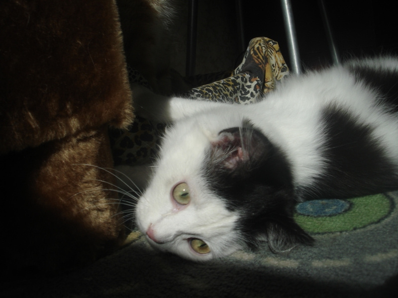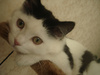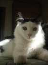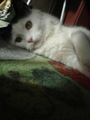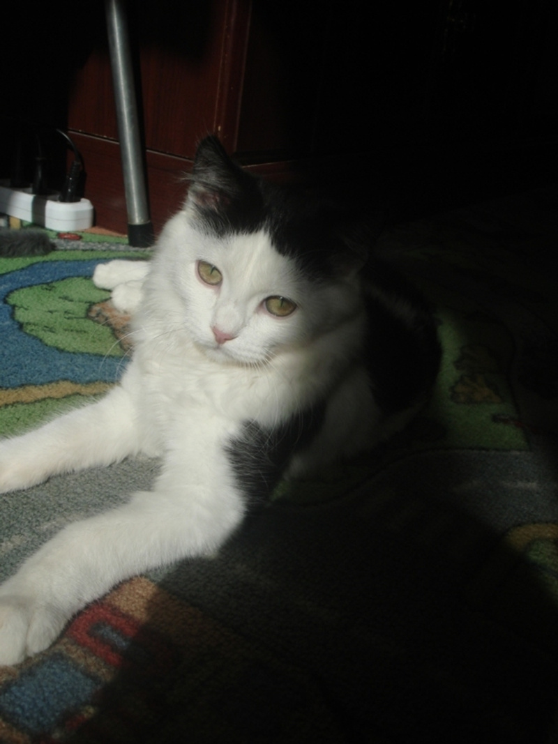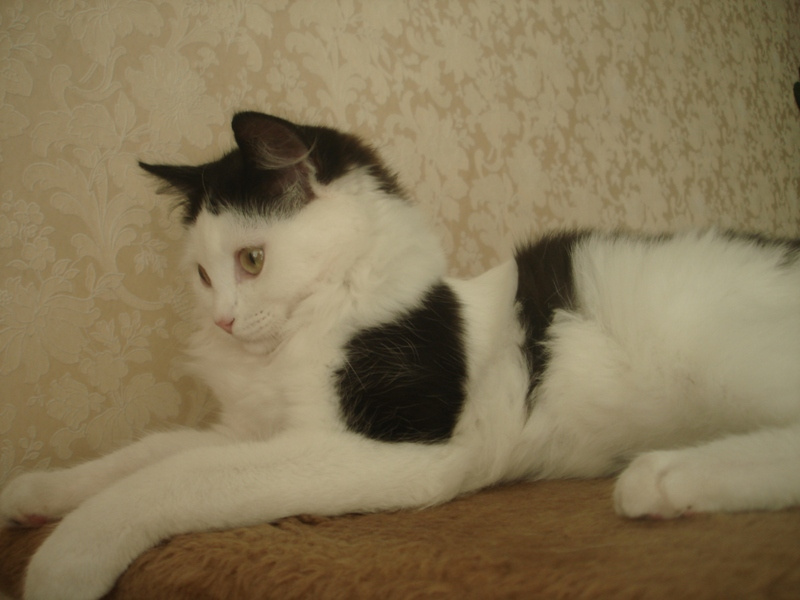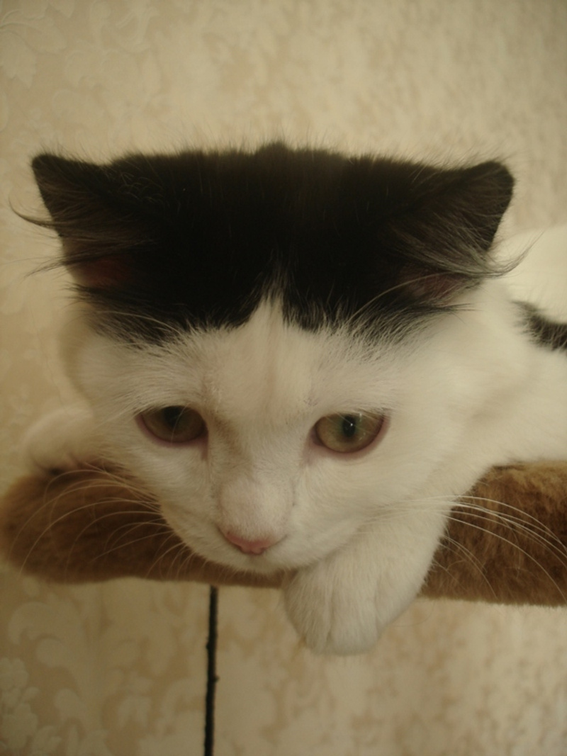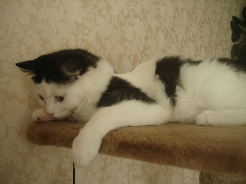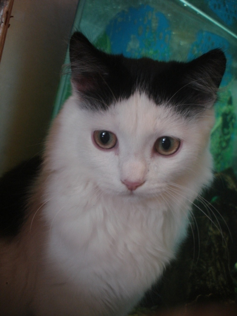 Имеем: котик, примерно месяцев 5ти, зубки еще только, только лезут, безумно ласковый, просто как сосиска висит на руках в любом положении и в любом месте, когда ехали в машине, он урчал, потягивался и сладко спал на руках, кот просто счастье какое то, горшок нашел с первого раза, кушает сушку, к другим кота дружелюбен. Вообще котик сплошной позитиффф. Вот и мы
