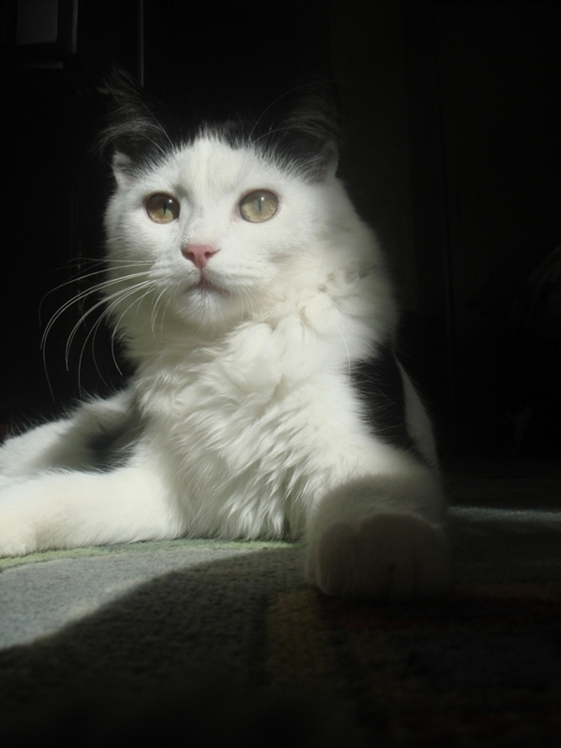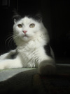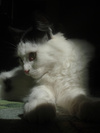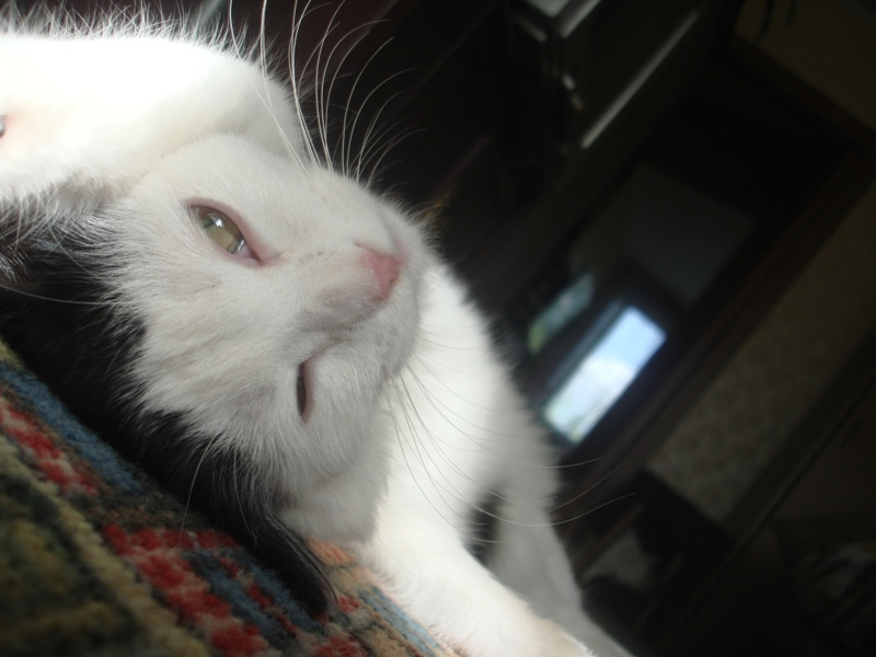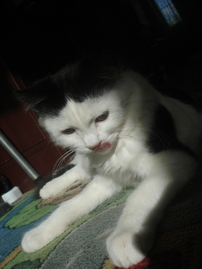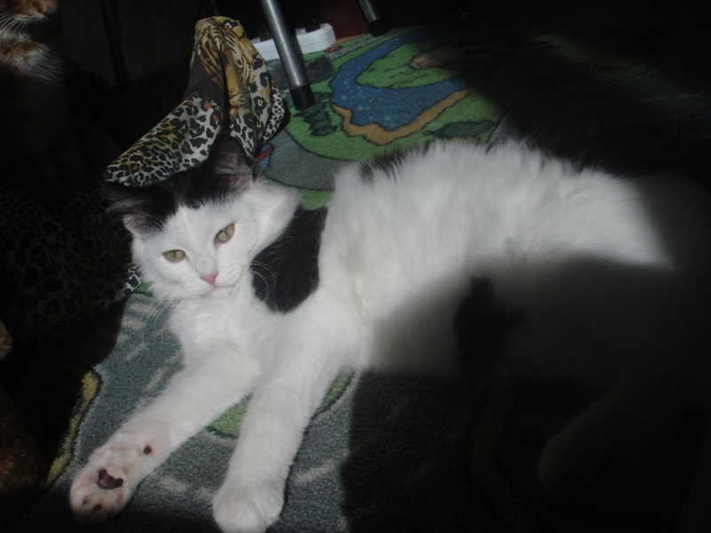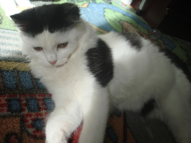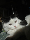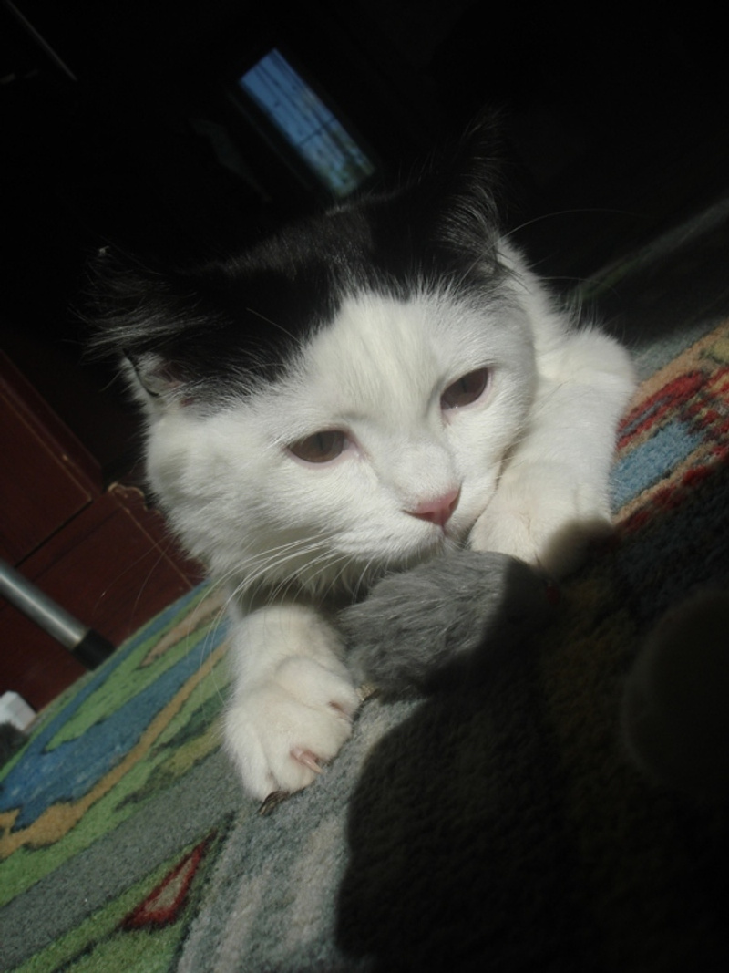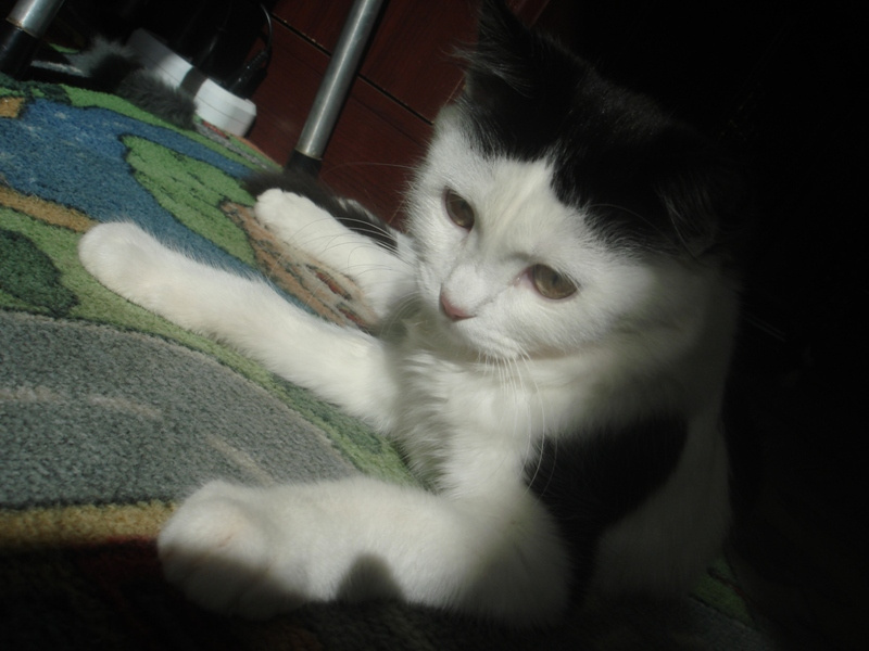 Имеем: котик, примерно месяцев 5ти, зубки еще только, только лезут, безумно ласковый, просто как сосиска висит на руках в любом положении и в любом месте, когда ехали в машине, он урчал, потягивался и сладко спал на руках, кот просто счастье какое то, горшок нашел с первого раза, кушает сушку, к другим кота дружелюбен. Вообще котик сплошной позитиффф. Вот и мы