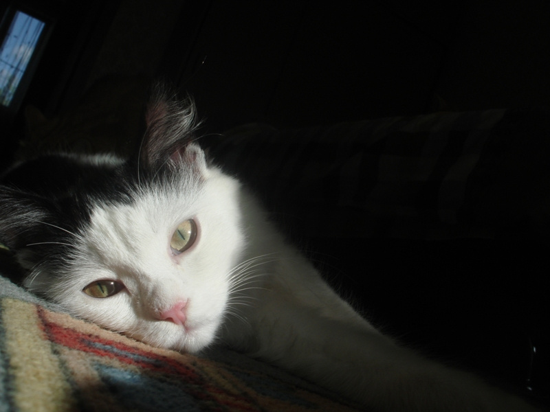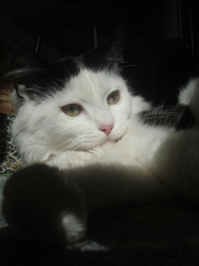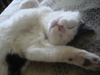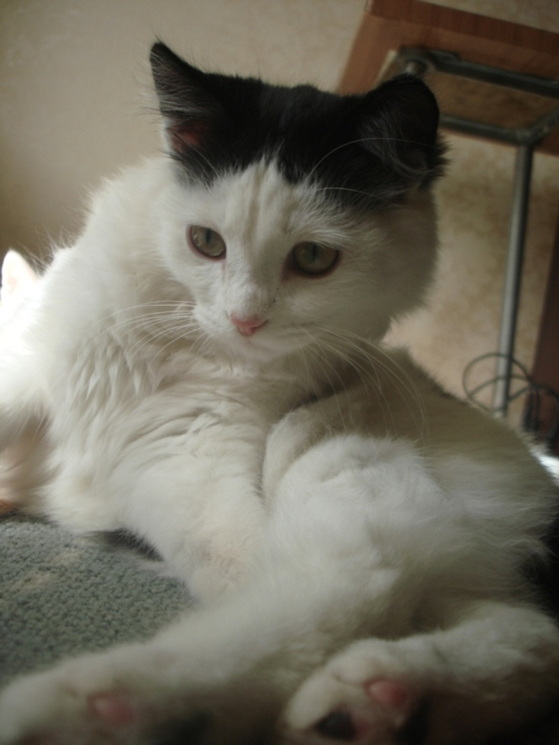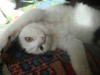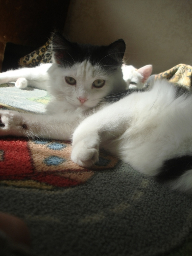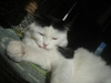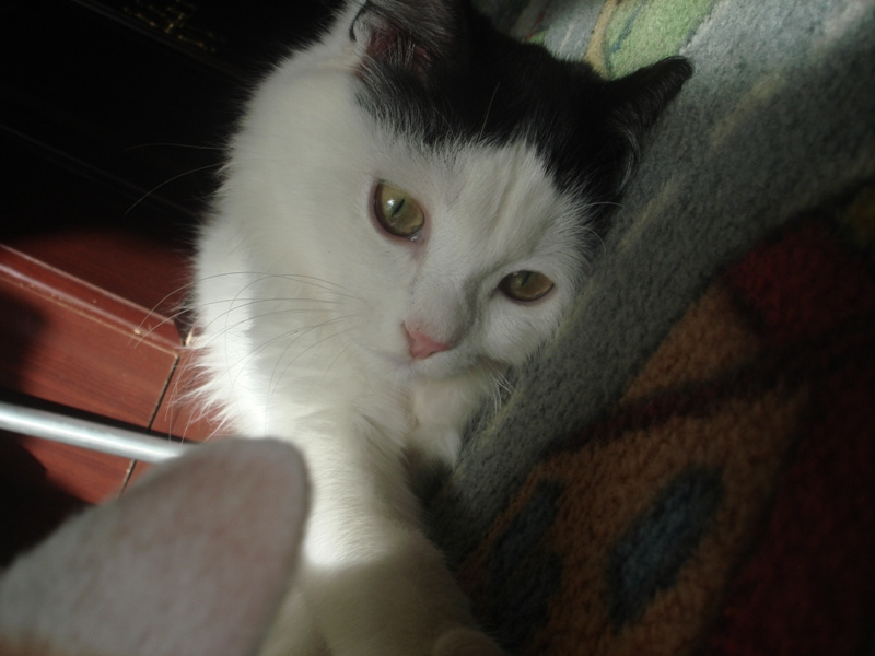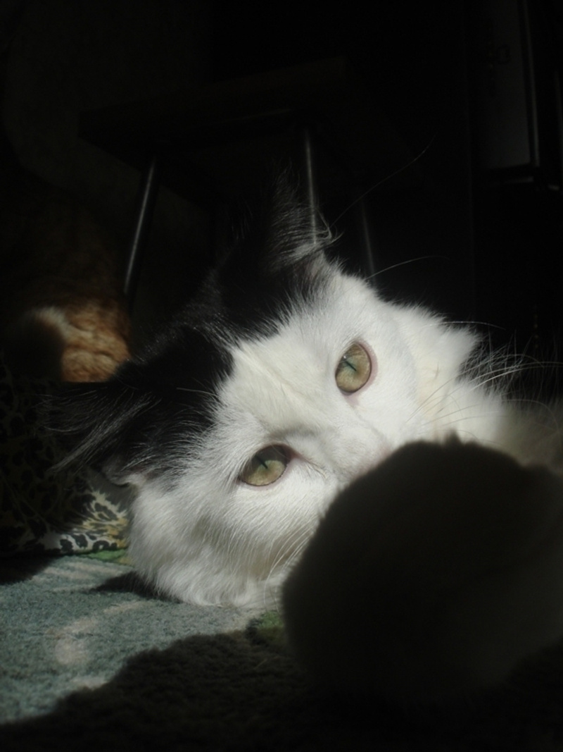 Имеем: котик, примерно месяцев 5ти, зубки еще только, только лезут, безумно ласковый, просто как сосиска висит на руках в любом положении и в любом месте, когда ехали в машине, он урчал, потягивался и сладко спал на руках, кот просто счастье какое то, горшок нашел с первого раза, кушает сушку, к другим кота дружелюбен. Вообще котик сплошной позитиффф. Вот и мы